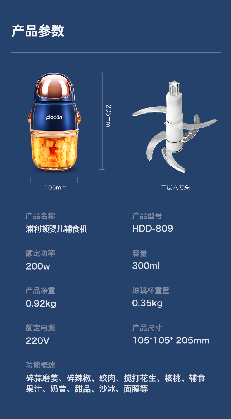商品名称:浦利顿(PLODON) 宇航员款迷你料理机(双杯)