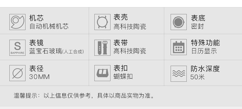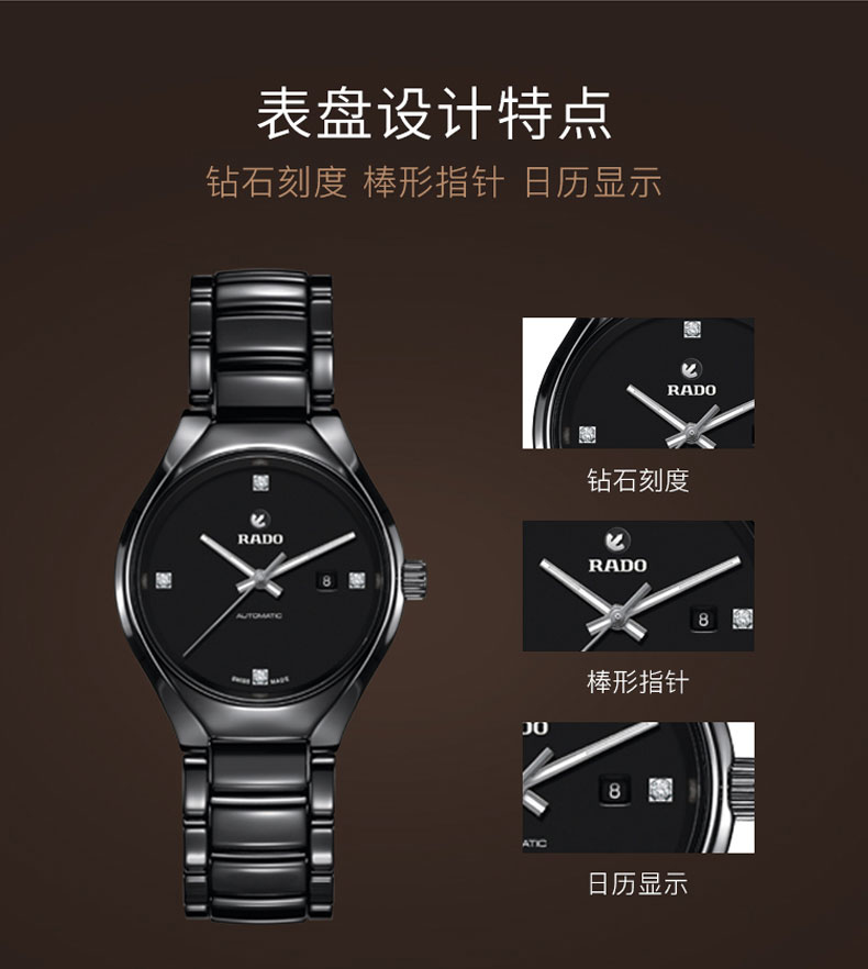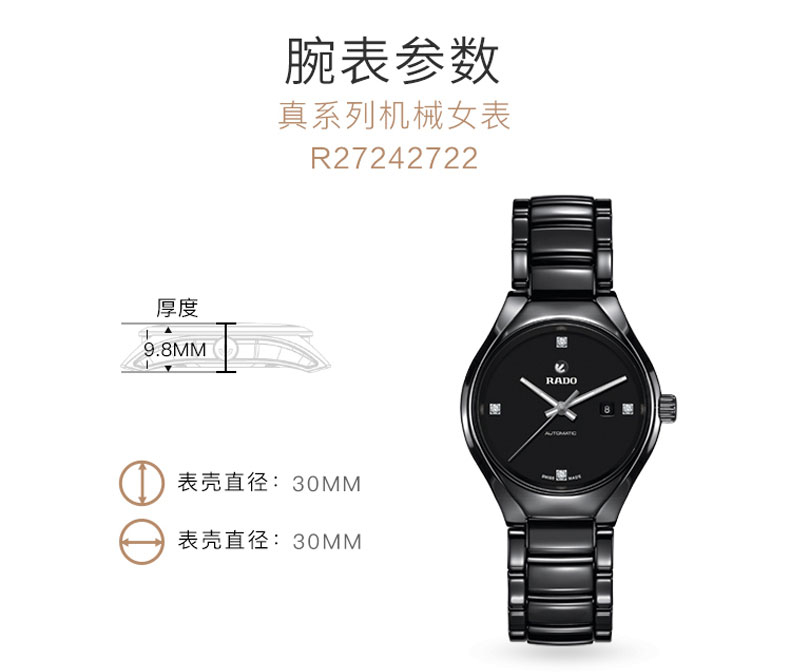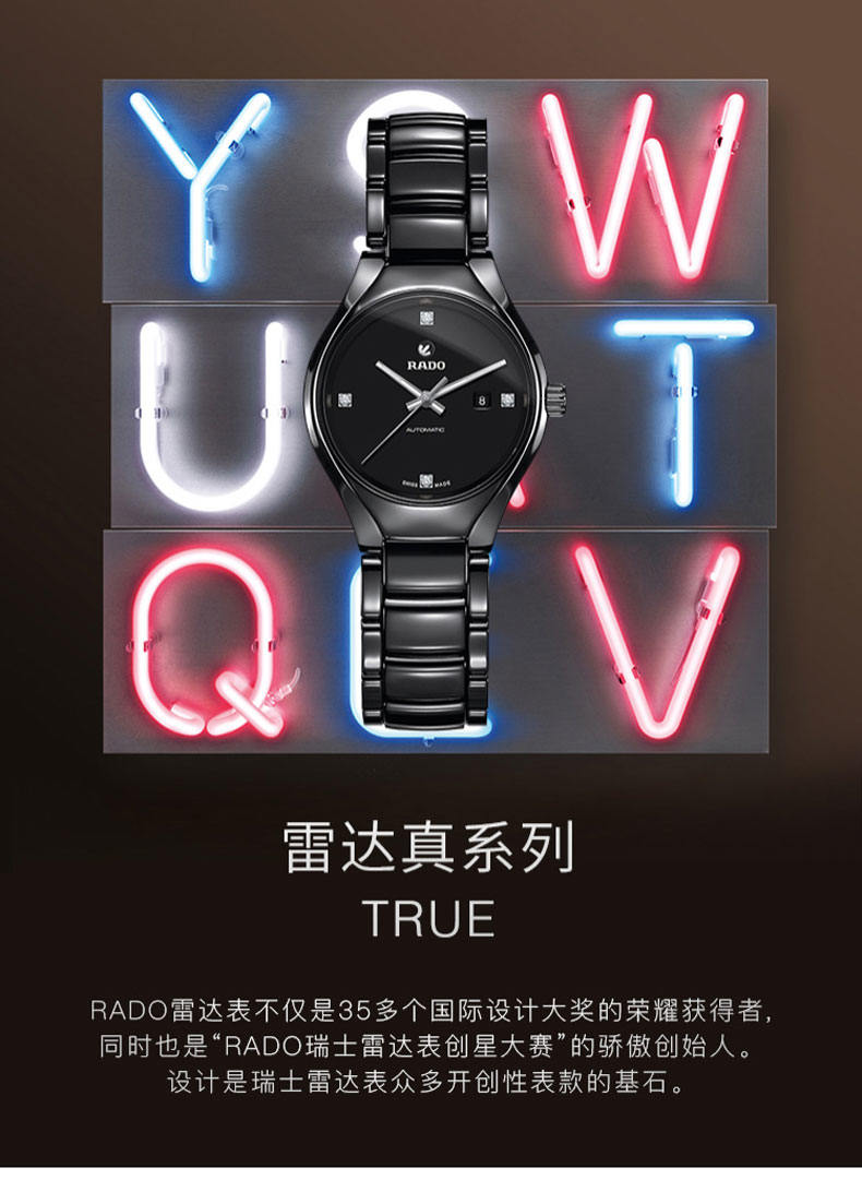 商品名称:雷达RADO 真系列女士高科技陶瓷表带情侣机械钻表 R27242722
