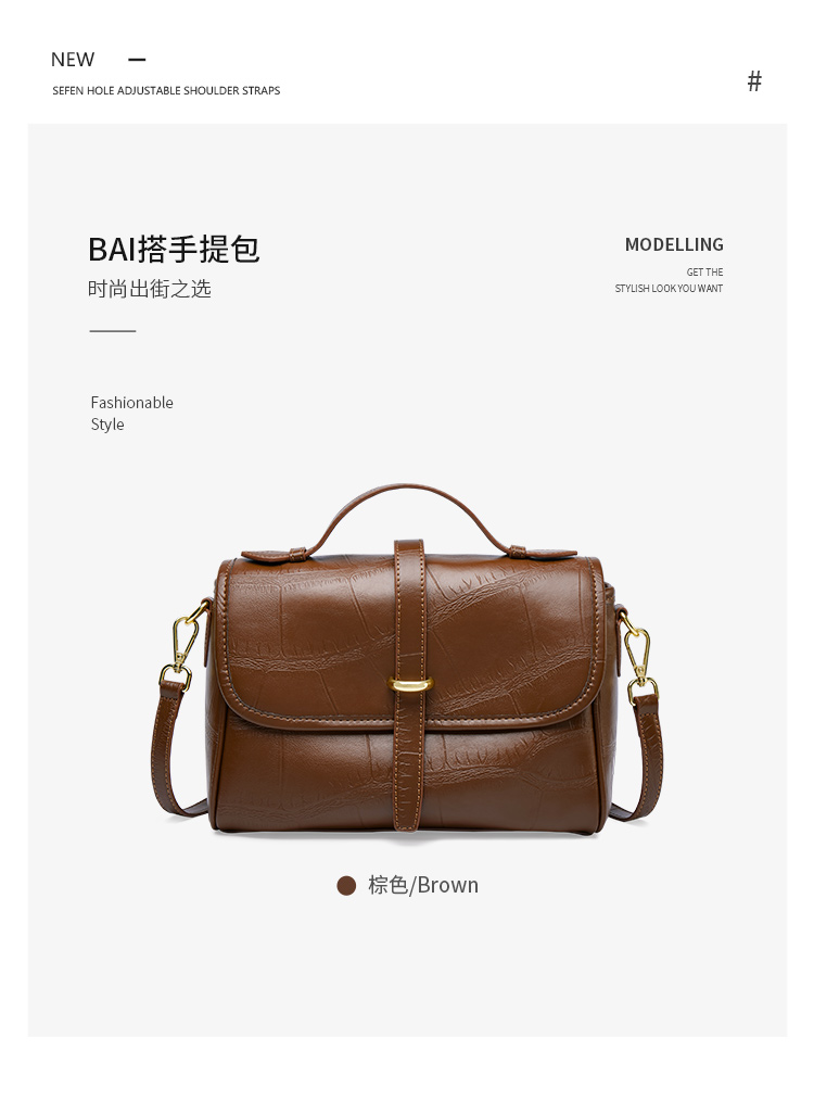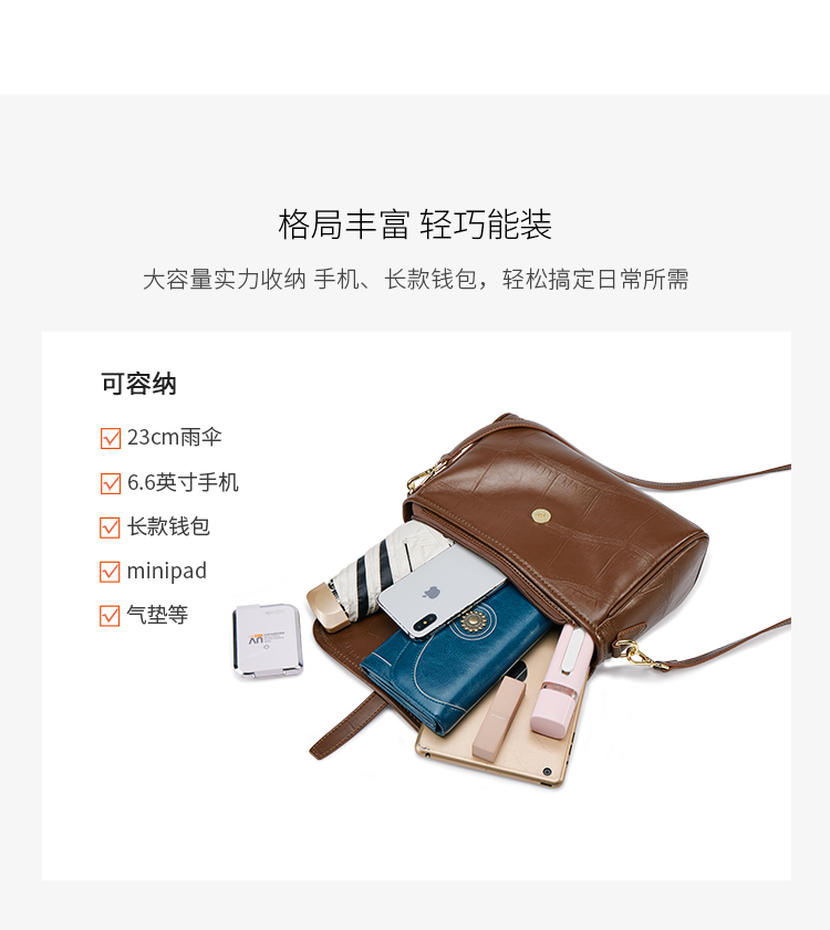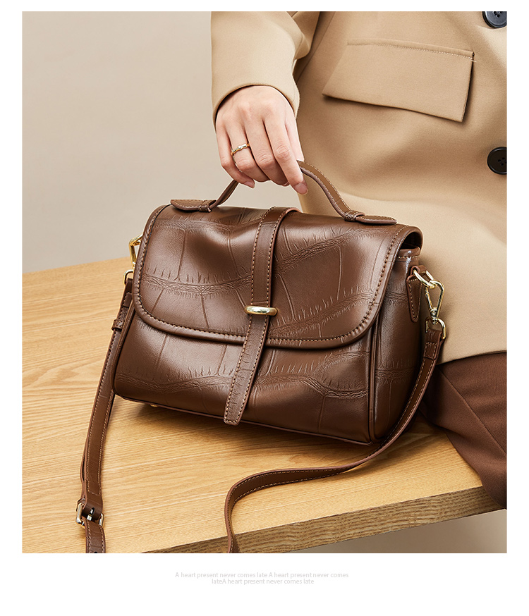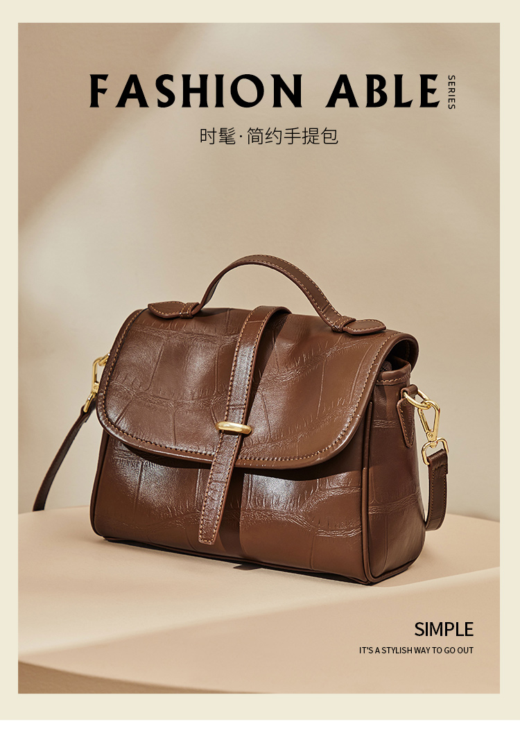 商品名称:纳兰杜女士斜挎包女牛皮邮差包大容量手提包真皮女包610001679
