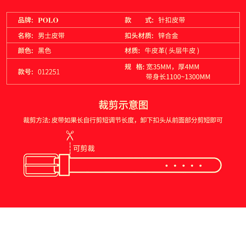 商品名称:POLO 针扣皮带(双面头层牛皮)