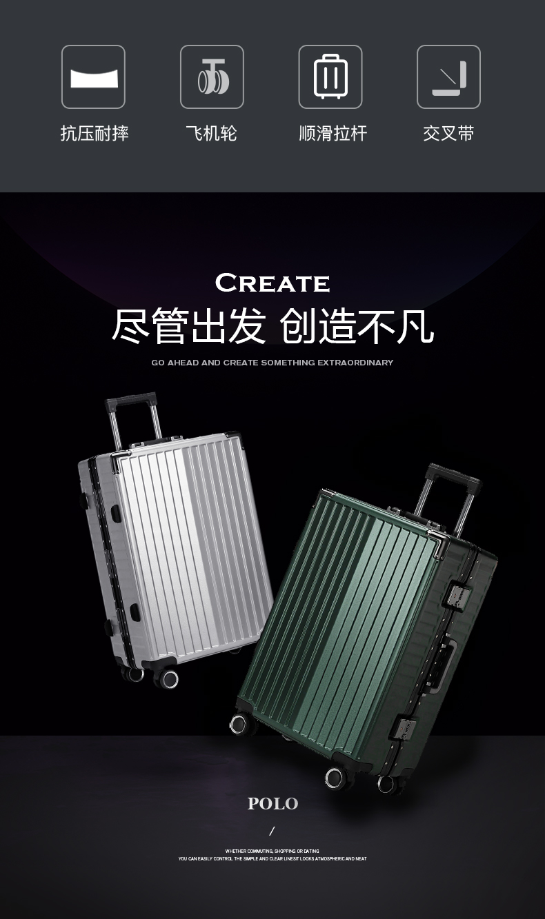 POLO拉杆箱轻音飞机轮行李箱登机箱旅行箱男女通用密码箱