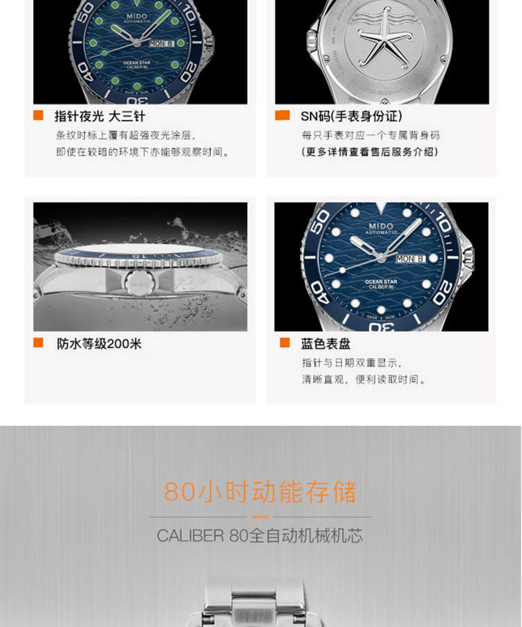 商品名称:MIDO美度 领航者系列长动能防水机械男士腕表 (不支持无理由退换货)