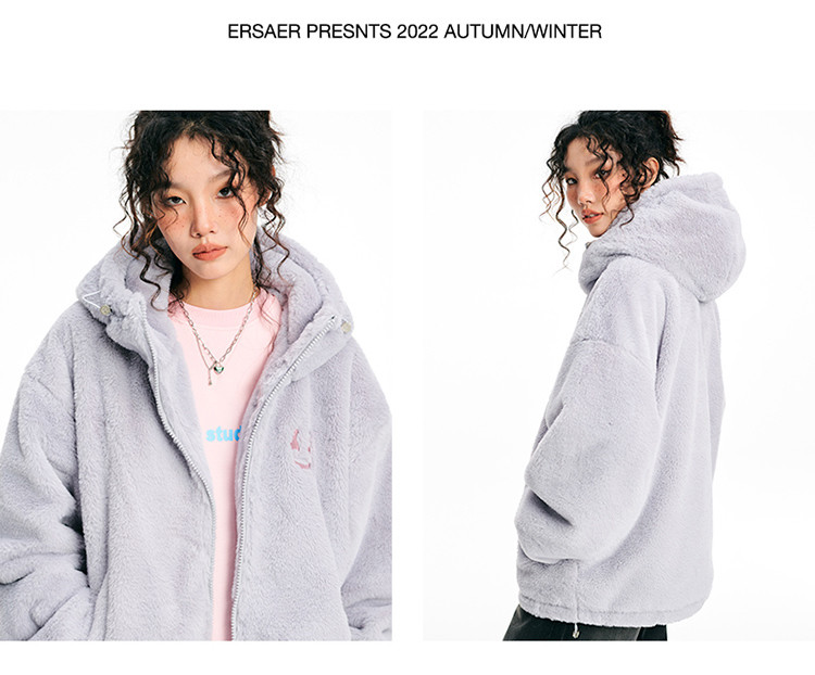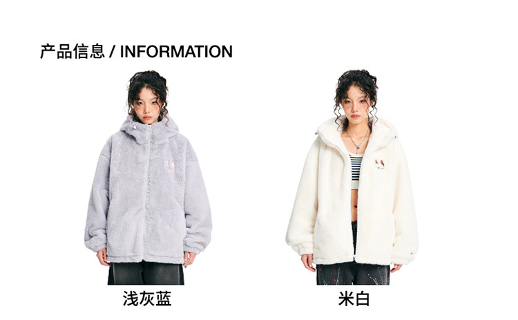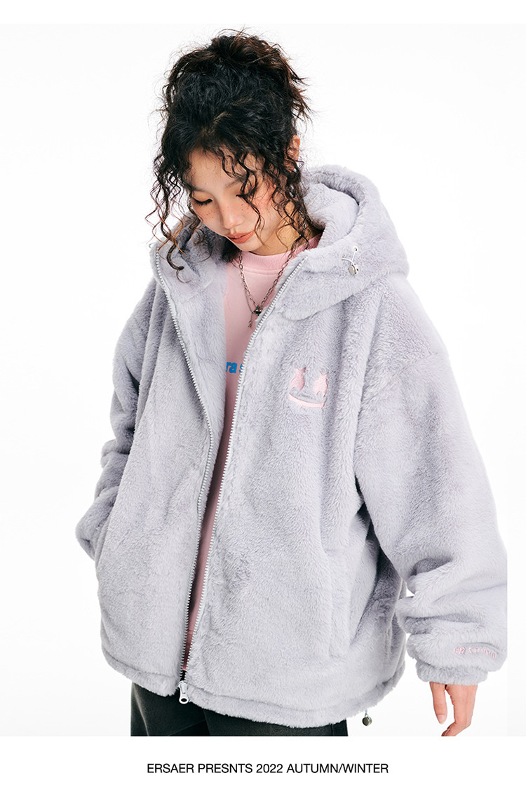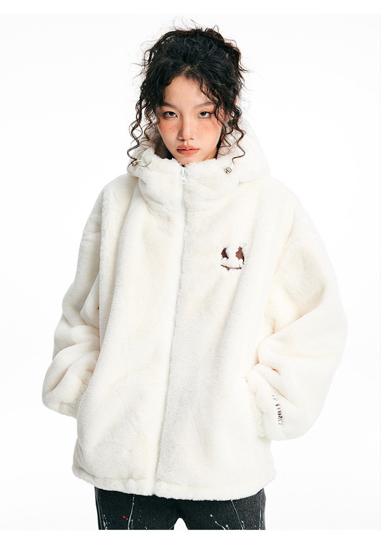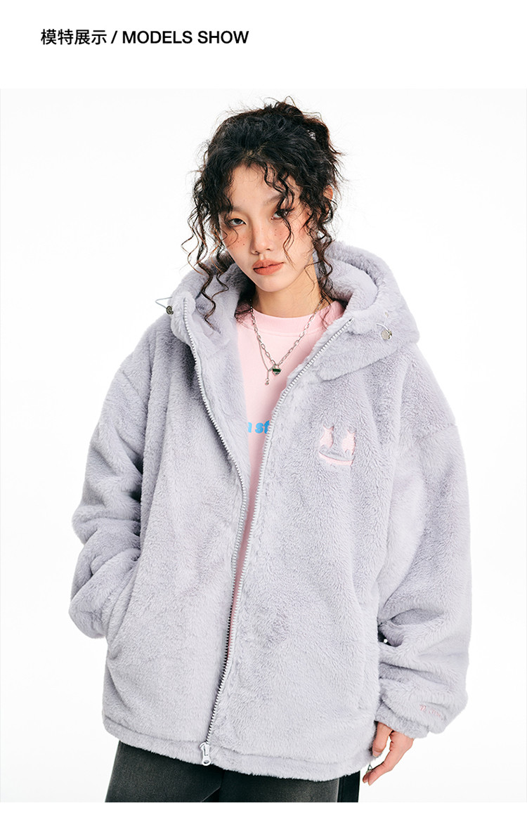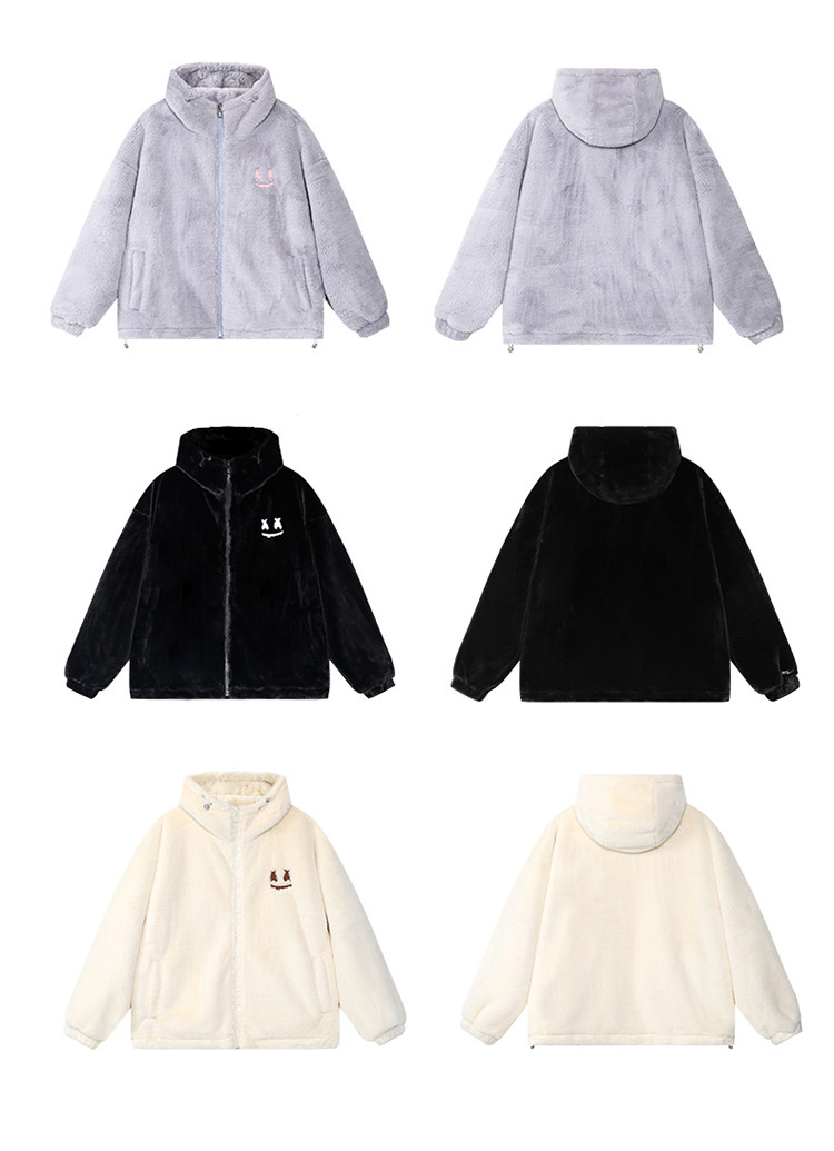 商品名称:笑脸仿羊羔绒外套男女同款冬季潮牌情侣款宽松毛绒加厚棉衣外套 979543