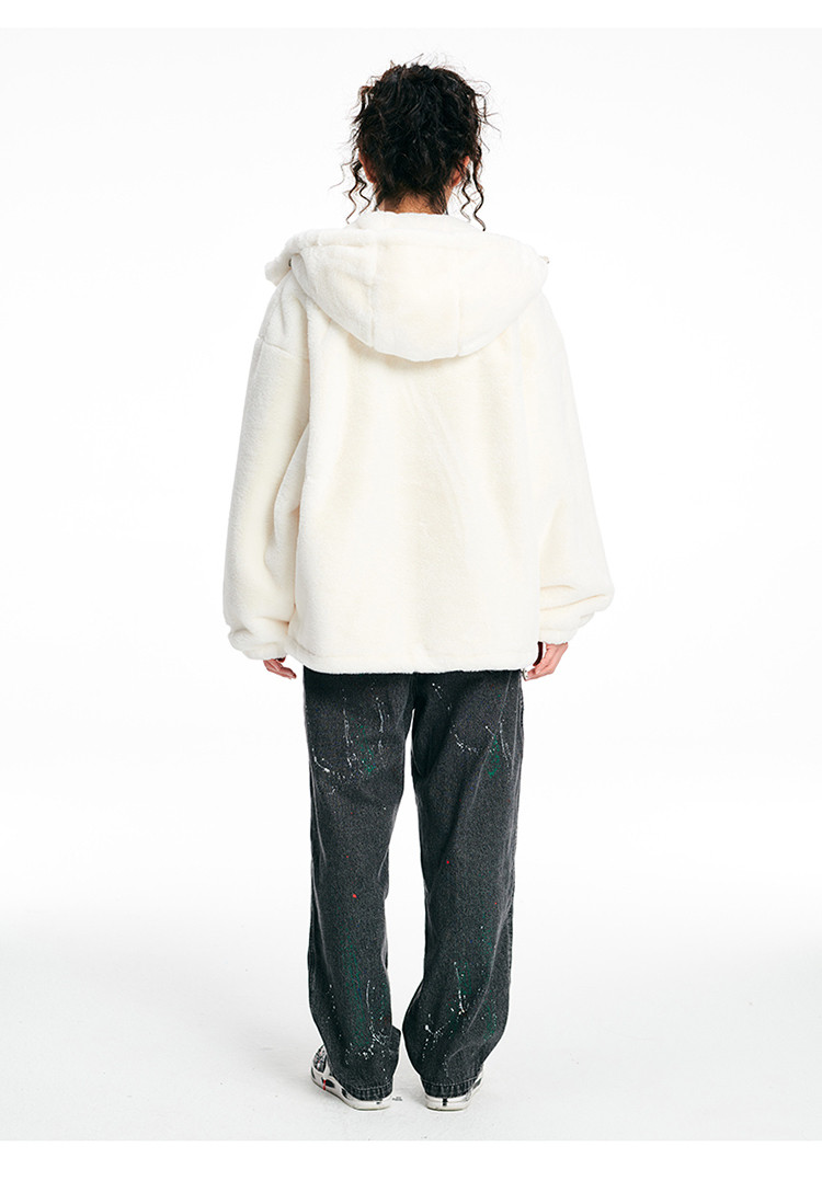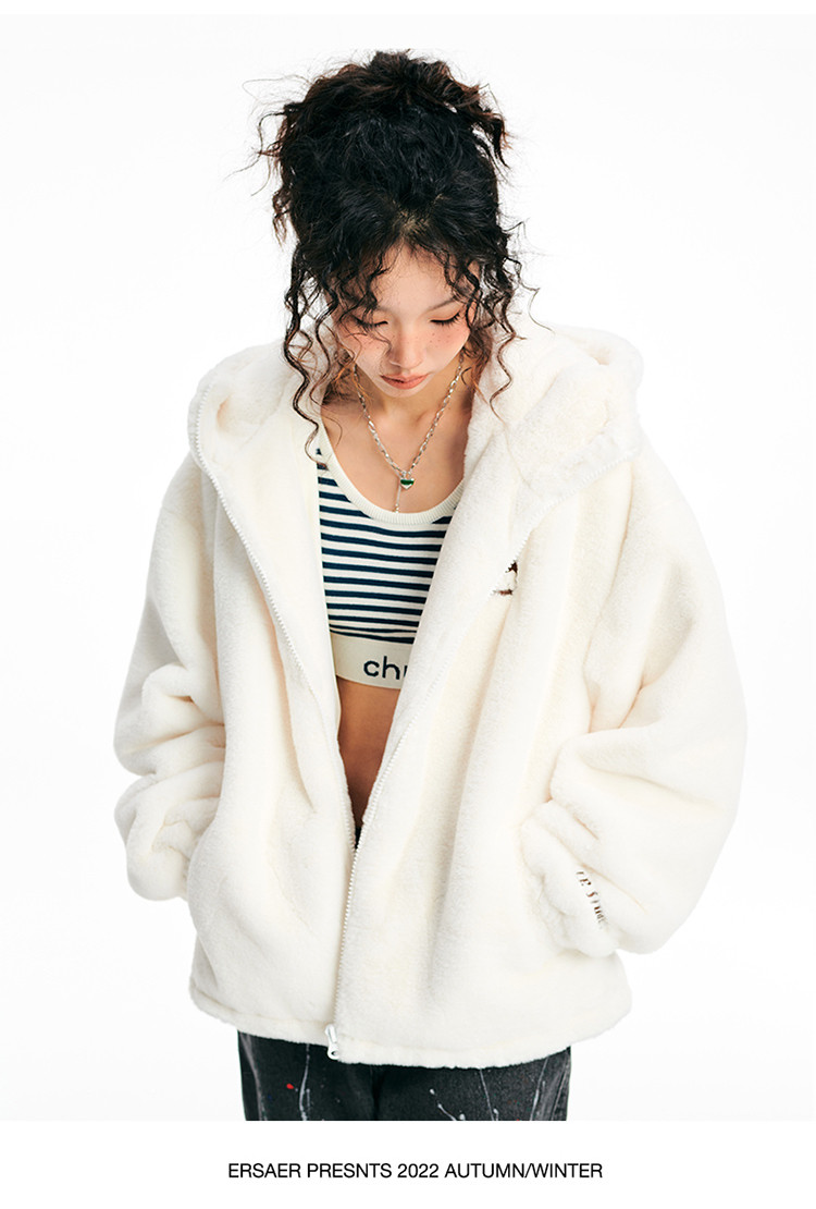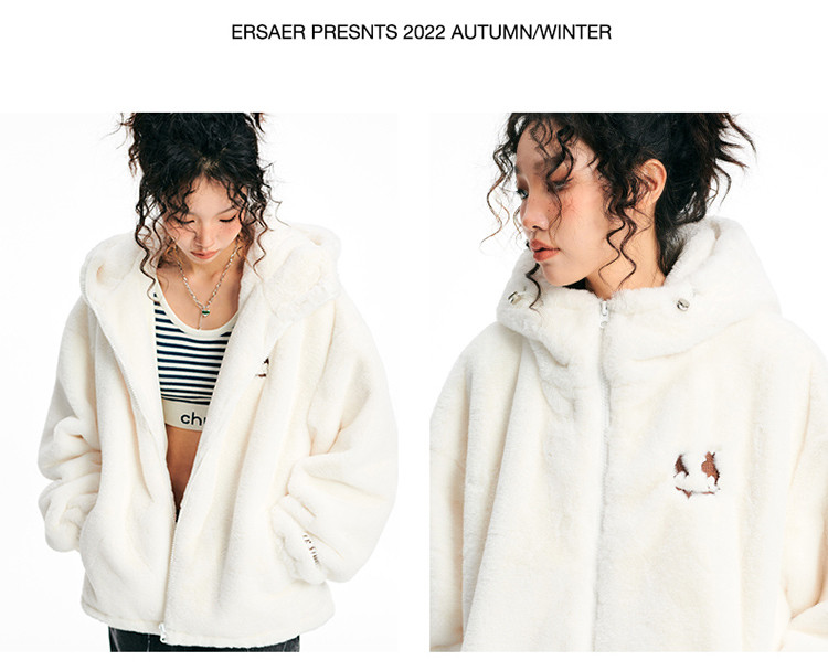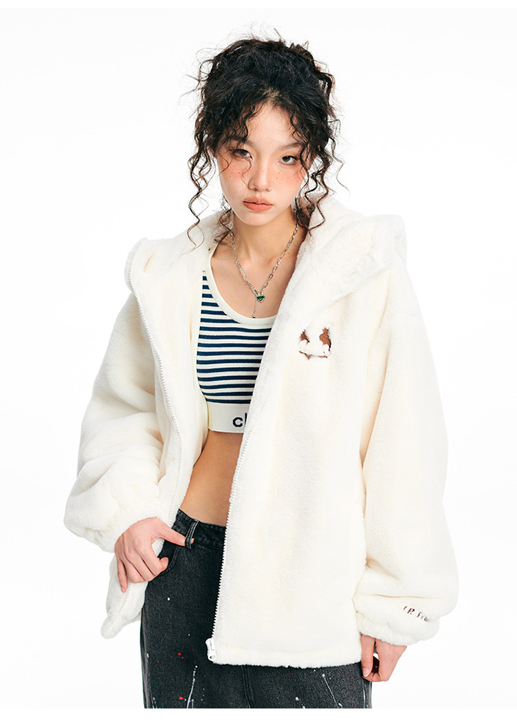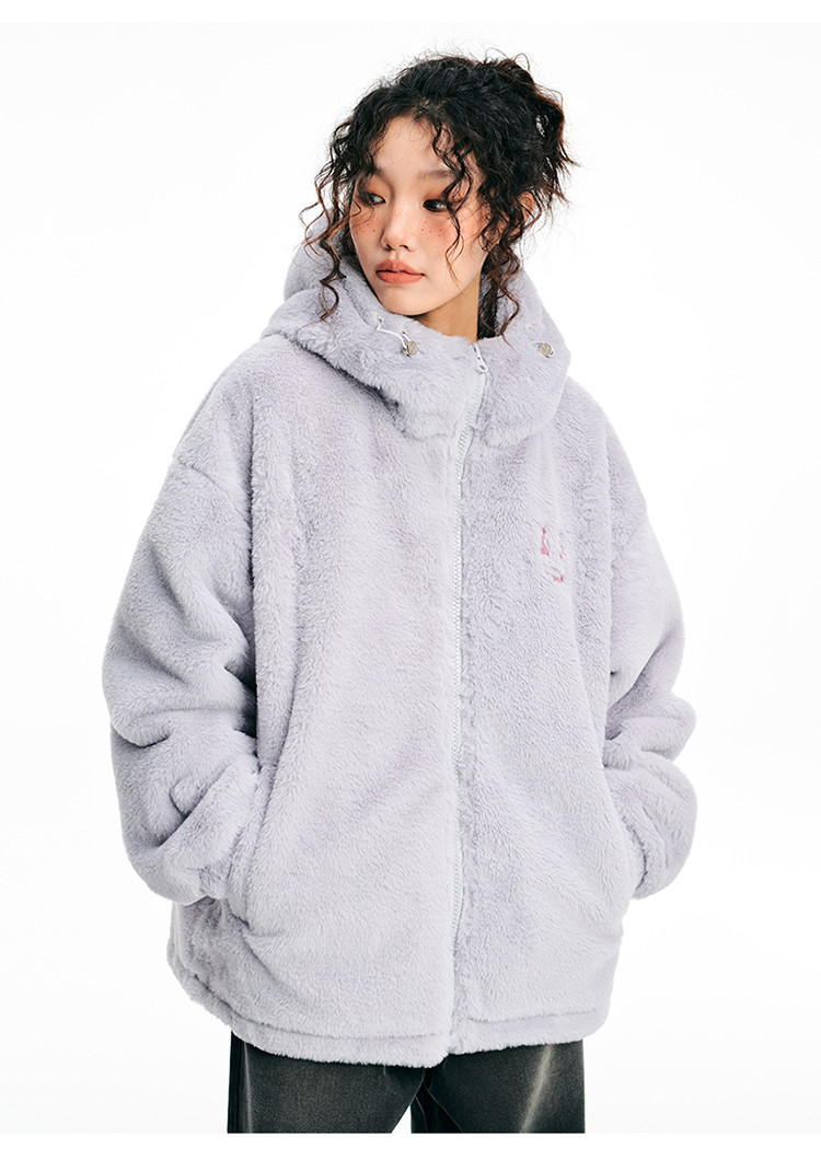 商品名称:笑脸仿羊羔绒外套男女同款冬季潮牌情侣款宽松毛绒加厚棉衣外套 979543