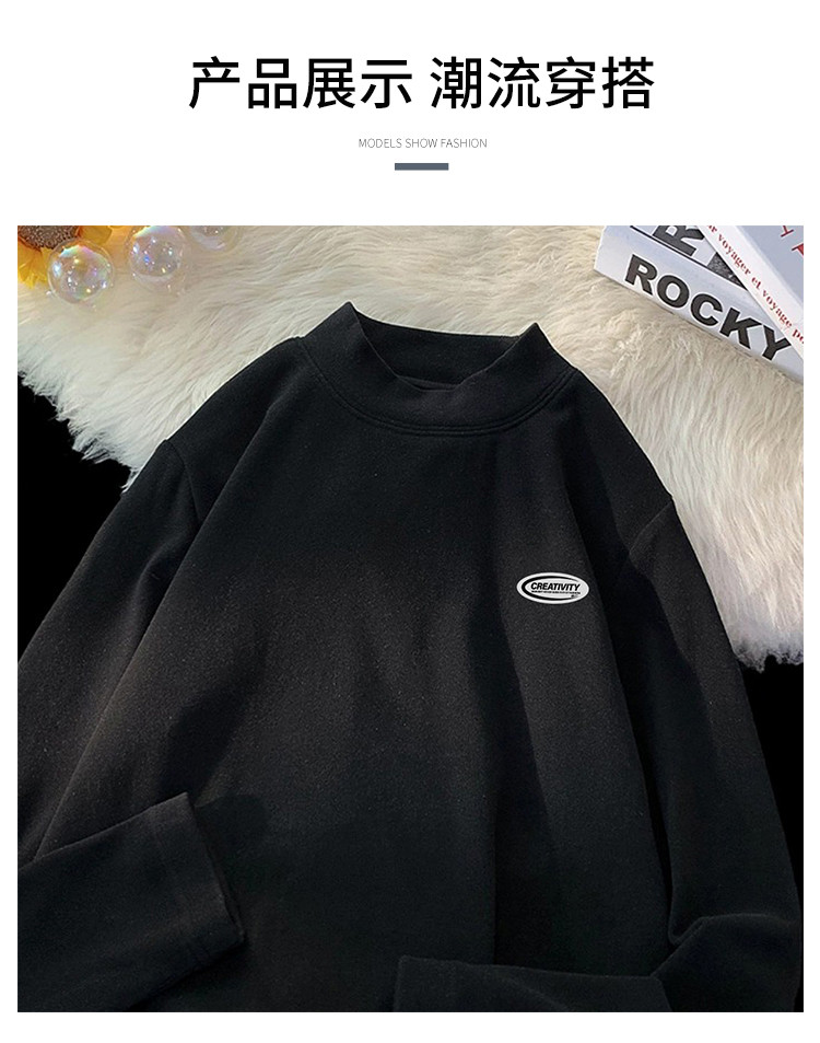 商品名称:半高领打底衫男款双面德绒长袖T恤春秋季情侣保暖舒适内搭男 455571