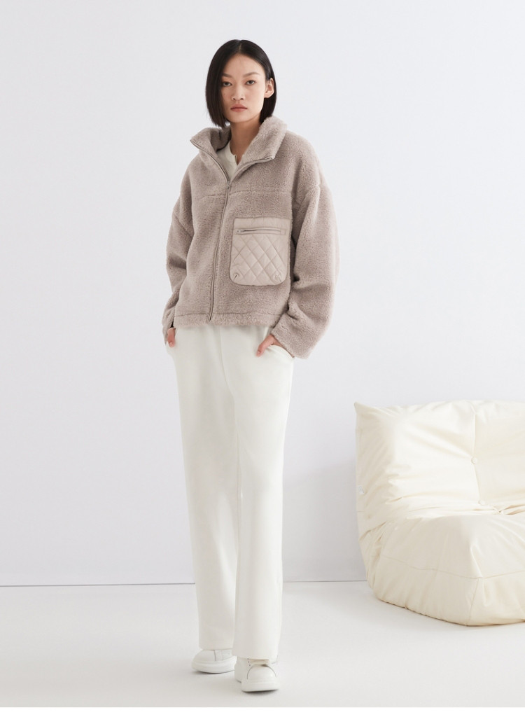 Gap女装秋冬季时尚拼接仿羊羔绒立领外套891880外套 333274