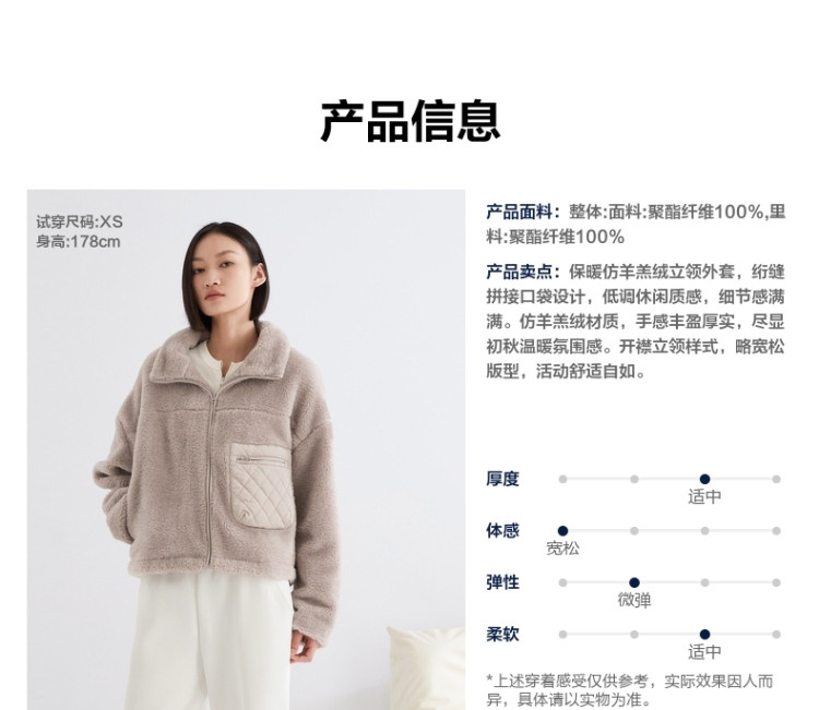 商品名称:Gap女装秋冬季时尚拼接仿羊羔绒立领外套891880外套 333274