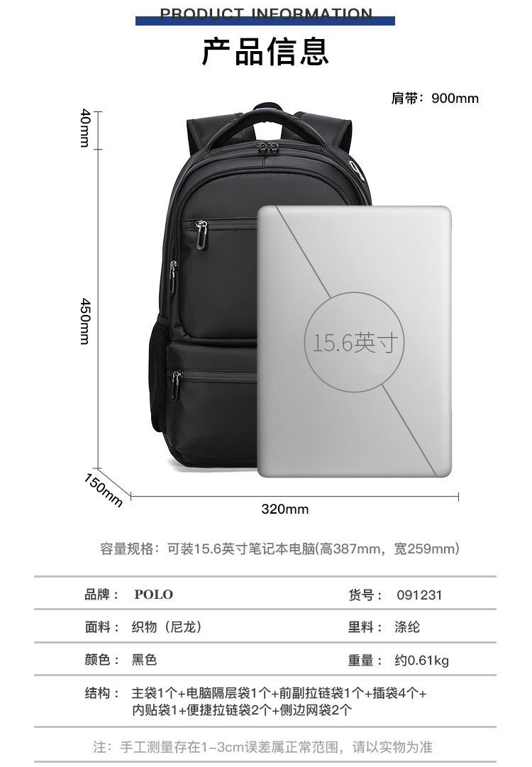 商品名称:POLO 男士背包简约商务休闲双肩包