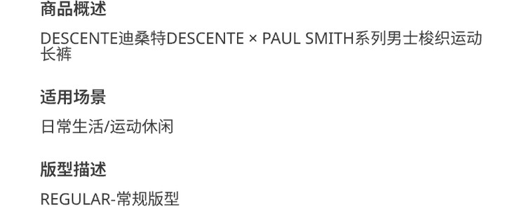 商品名称:迪桑特PAUL SMITH系列 男子 梭织运动长裤 071896