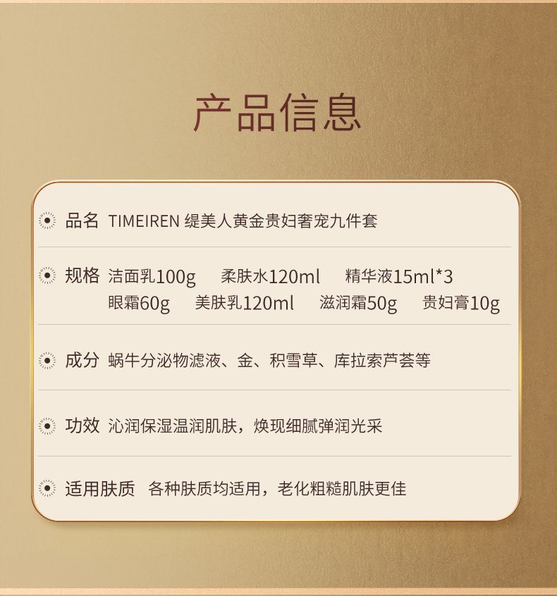 商品名称:TIMEIREN缇美人 黄金贵妇奢宠九件套