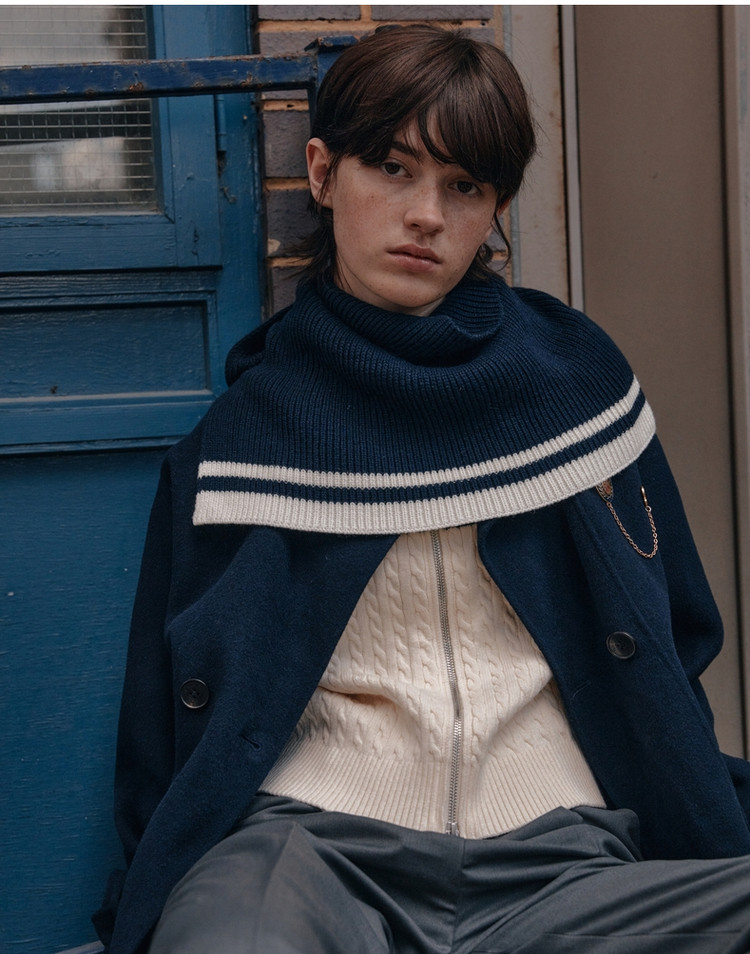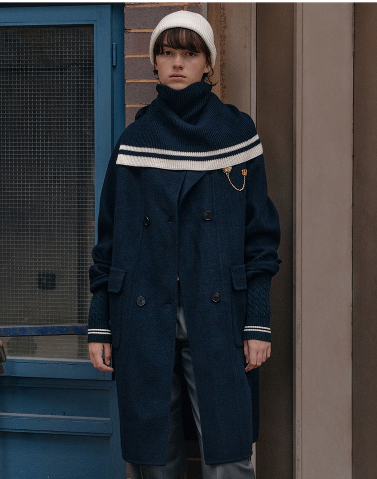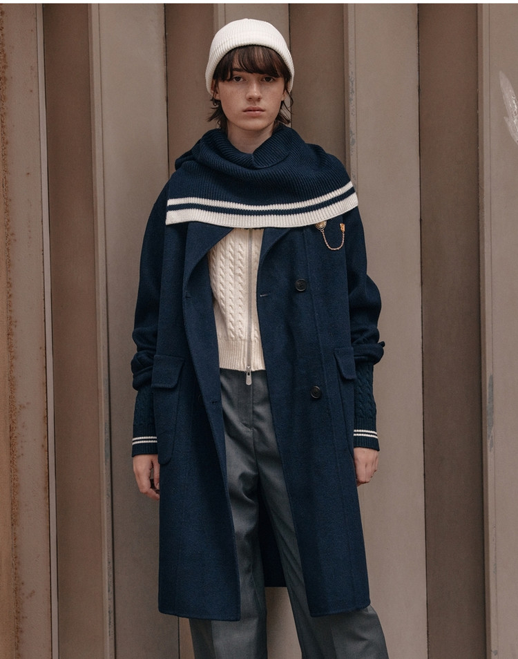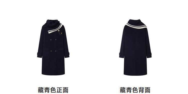 商品名称:毛呢大衣女秋冬绵羊毛宽松长款带围脖毛呢外套女 494465