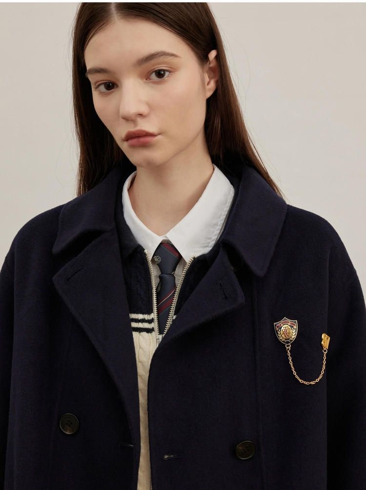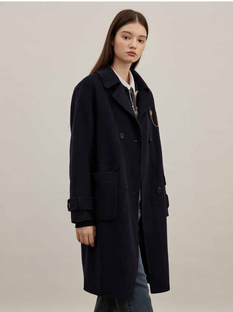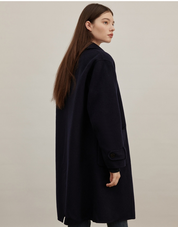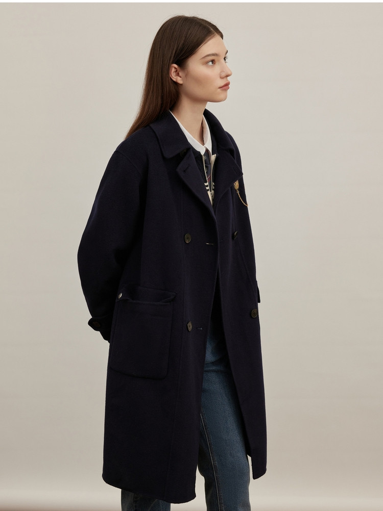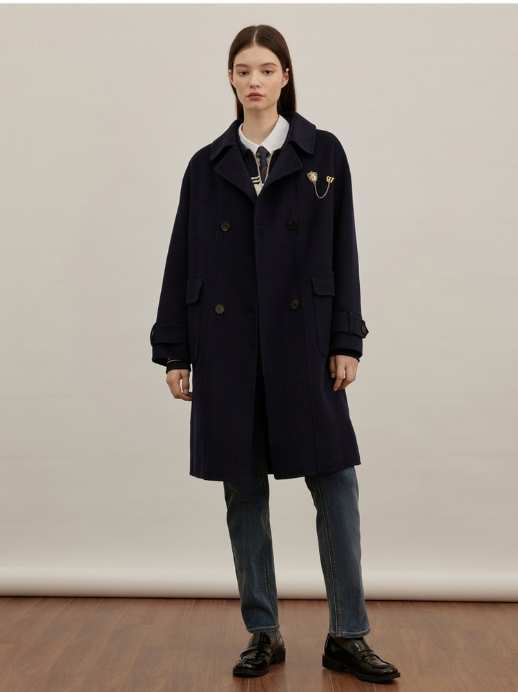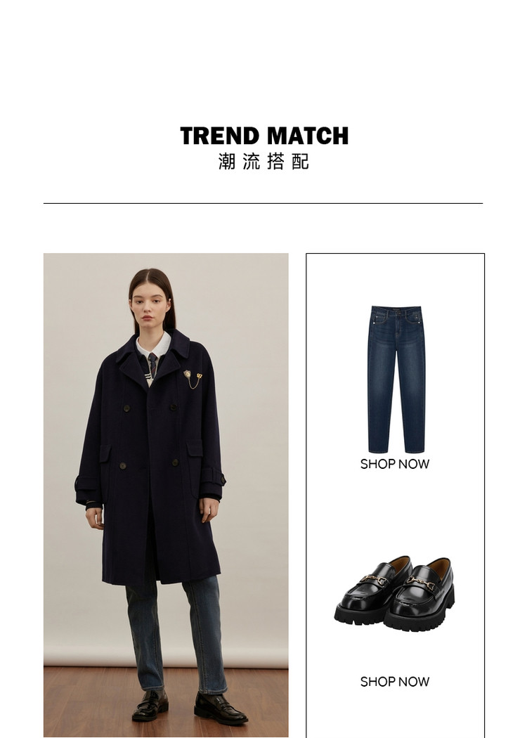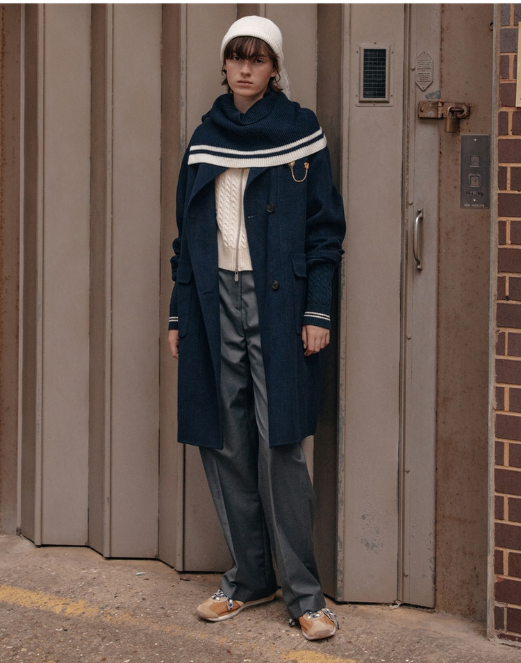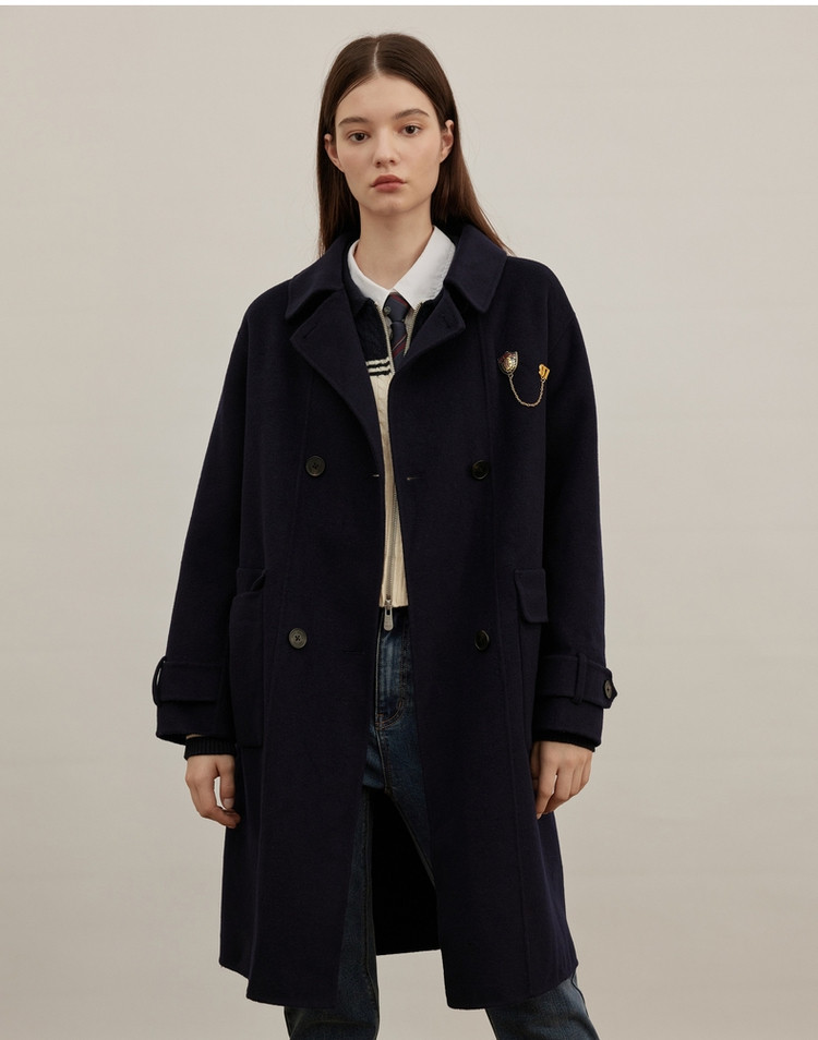 毛呢大衣女秋冬绵羊毛宽松长款带围脖毛呢外套女 494465