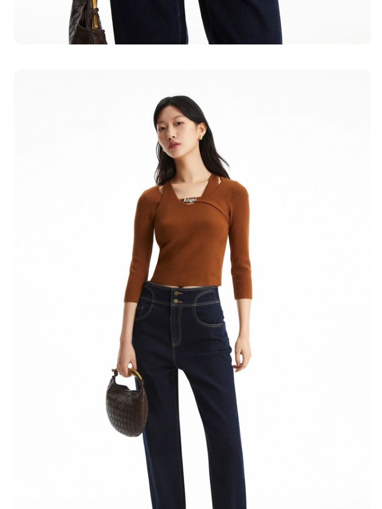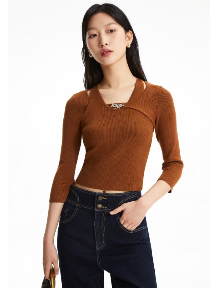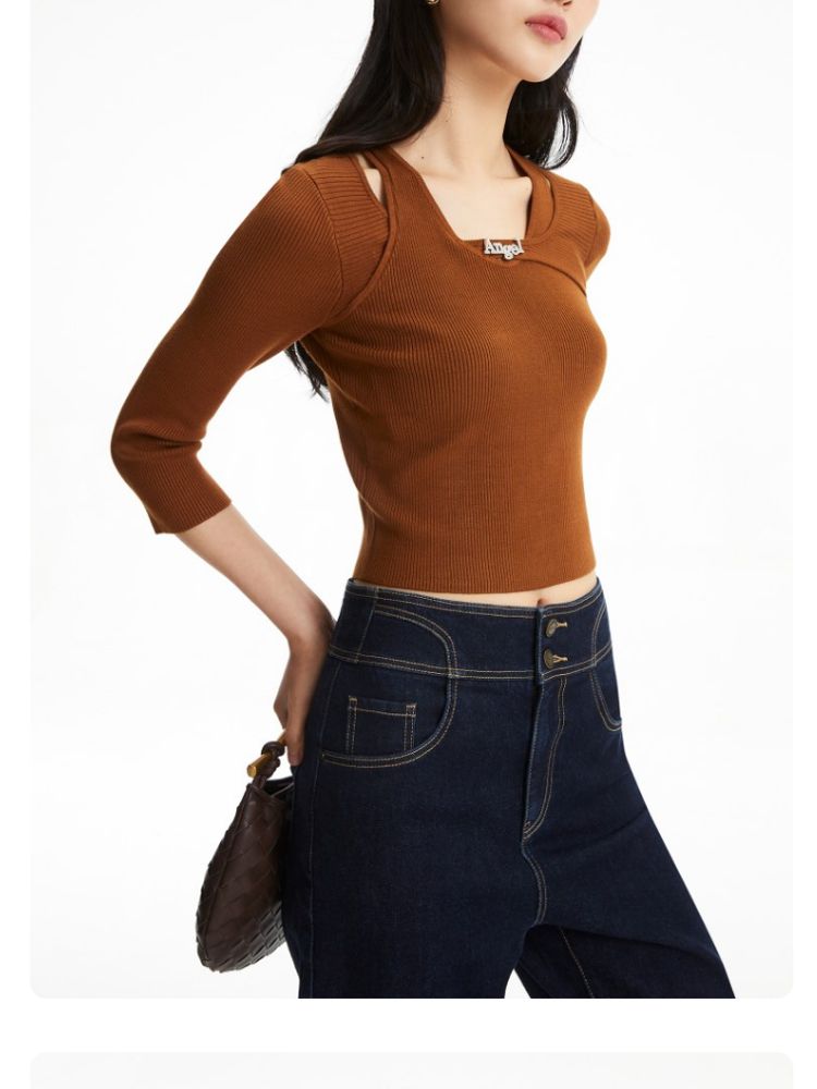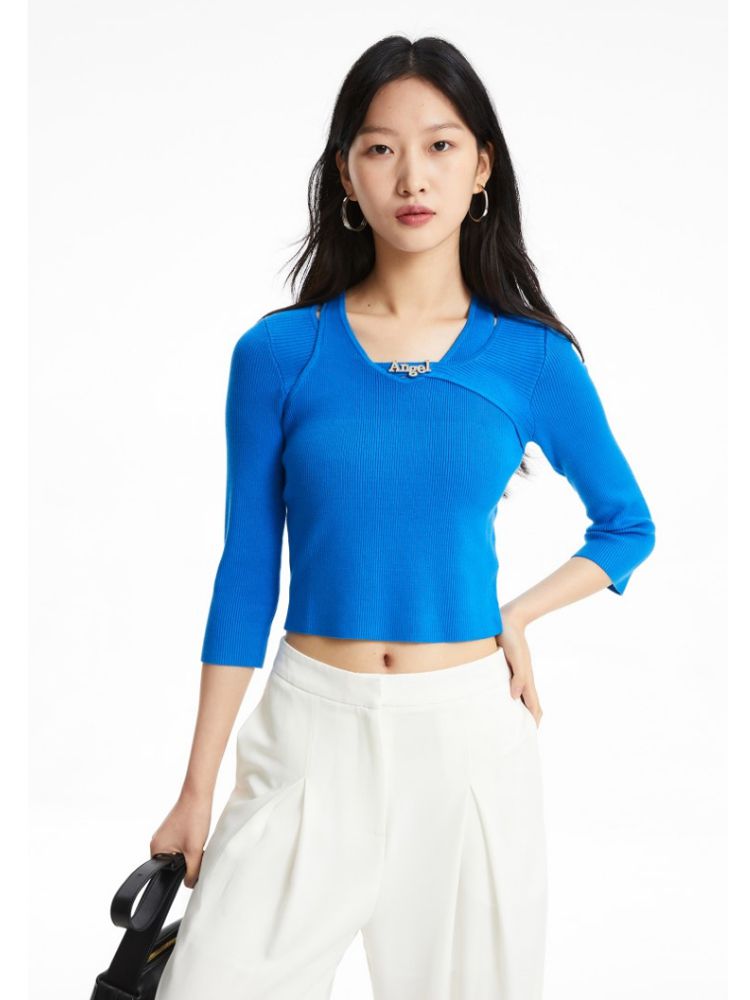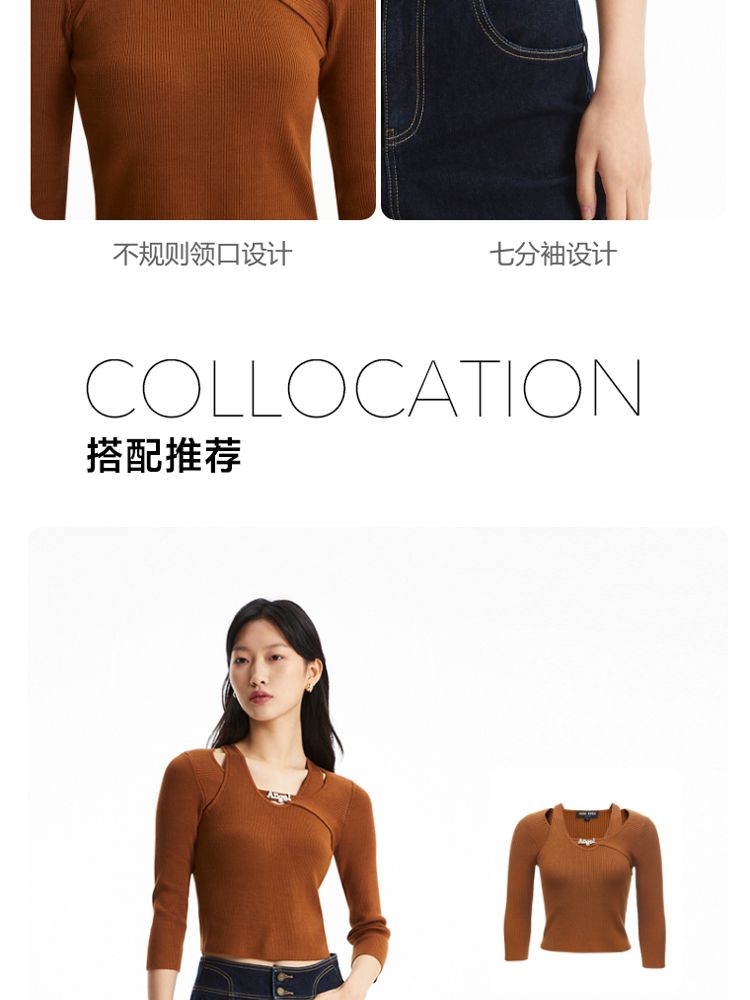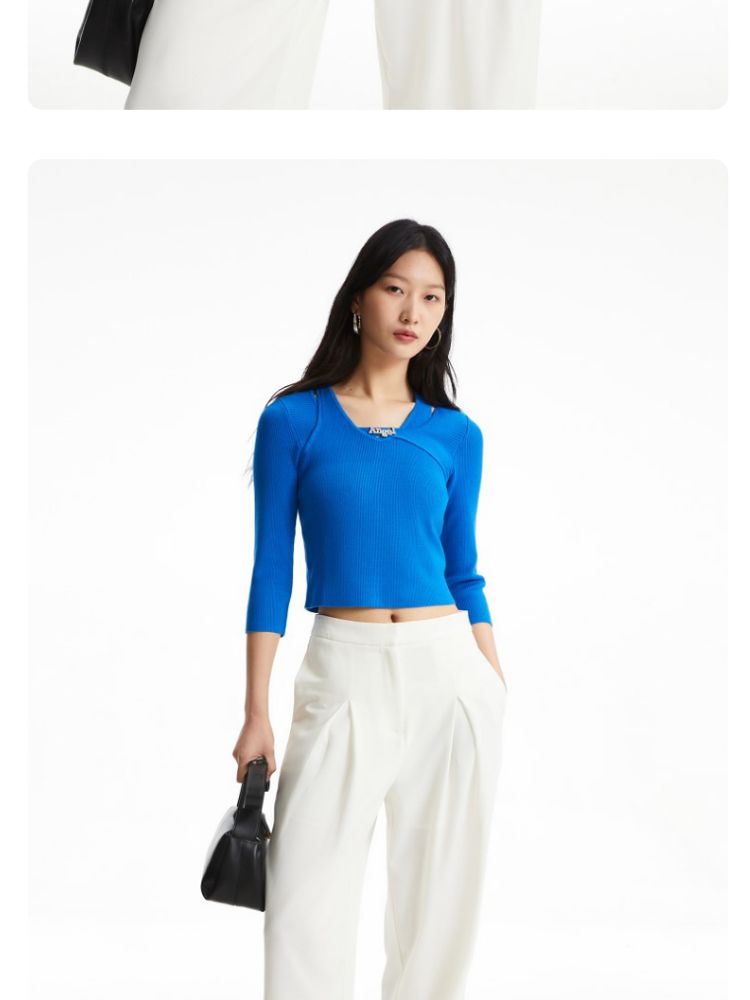 春夏季专柜修身版型七分袖针织衫气质百搭时尚 363281