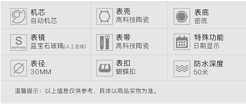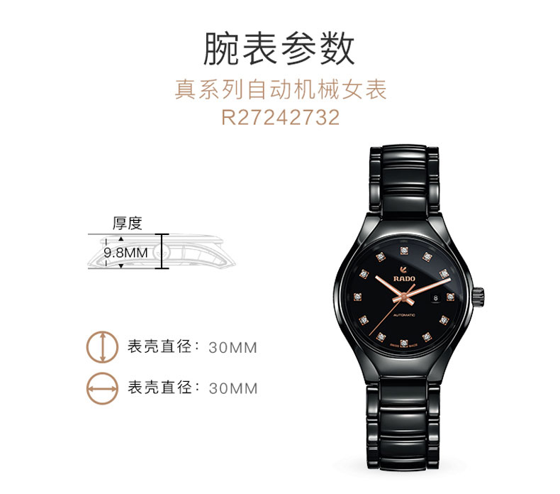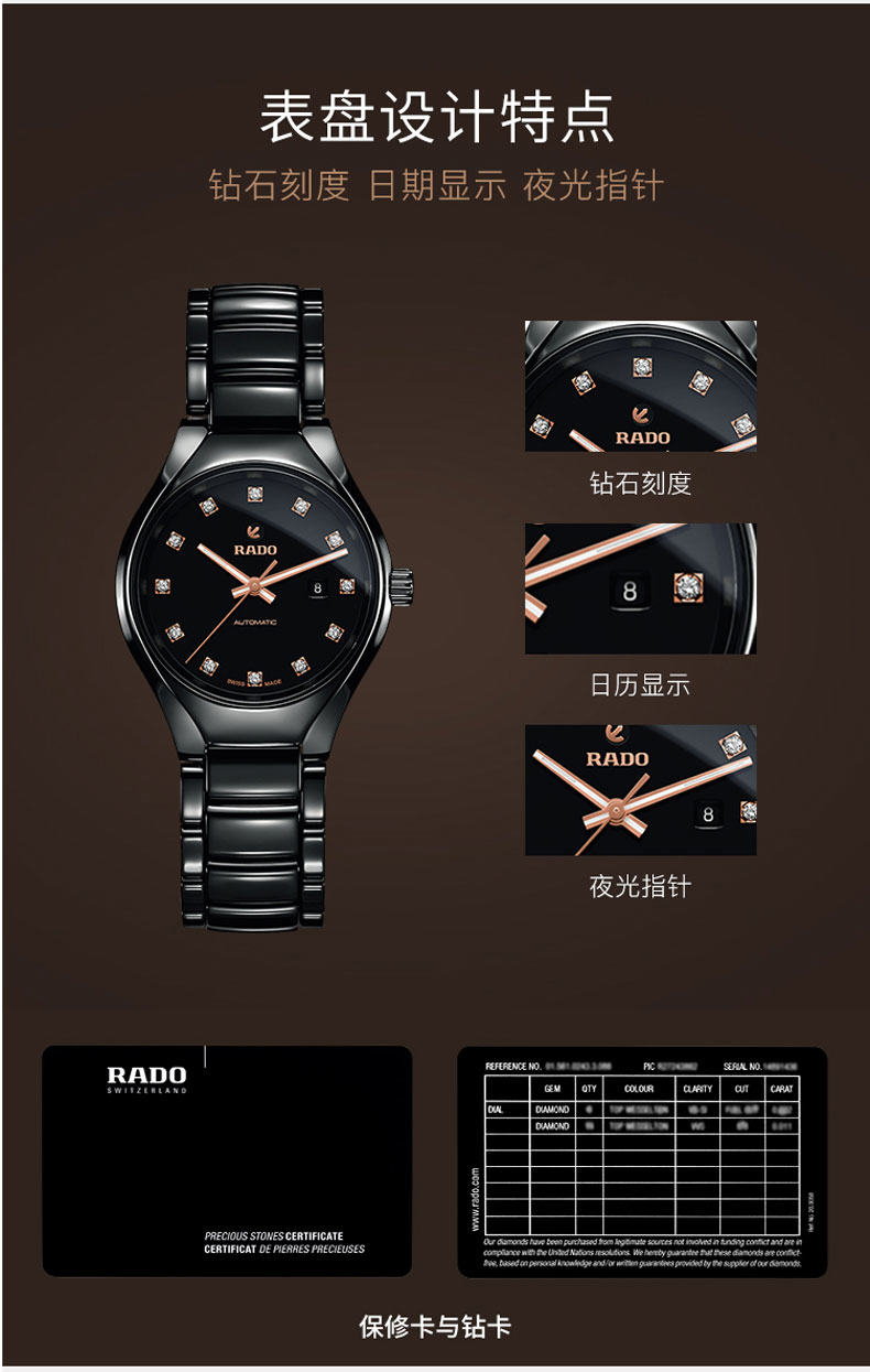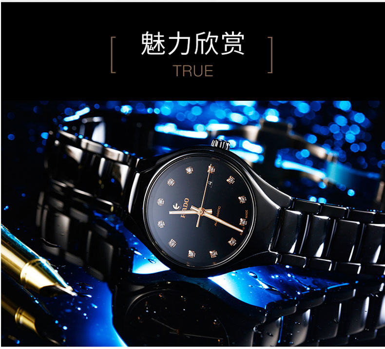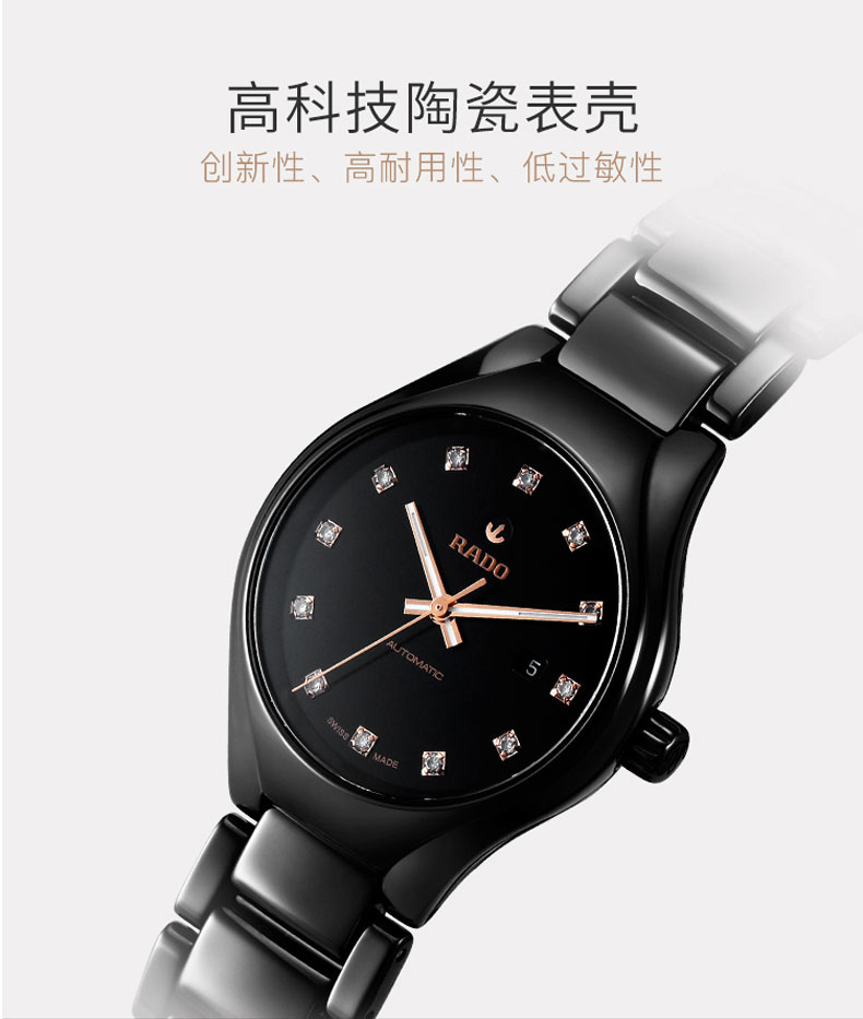 商品名称:雷达RADO 真系列女士高科技陶瓷表带情侣机械钻表 (不支持无理由退换货)
