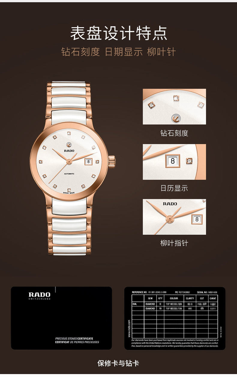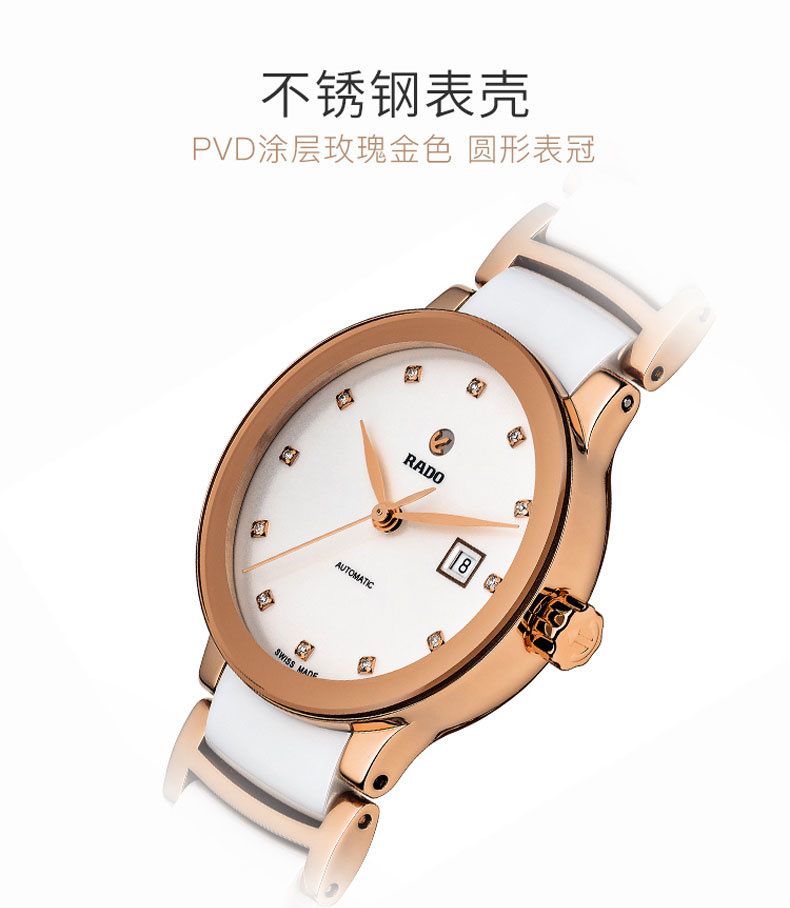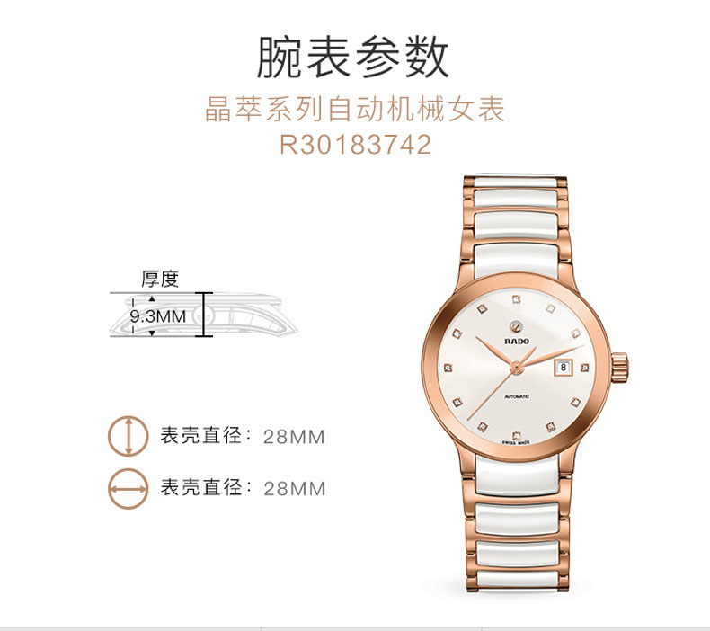 商品名称:雷达RADO 晶萃系列女士陶瓷表带机械钻表 R30183742