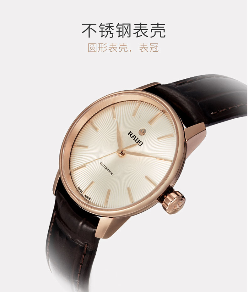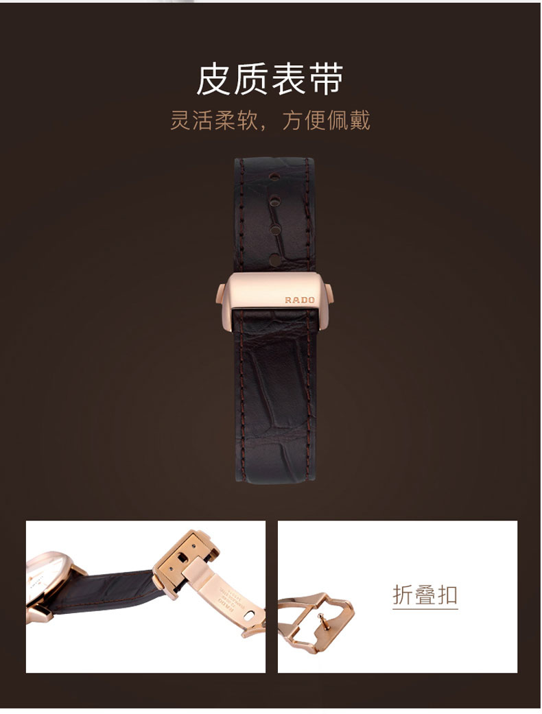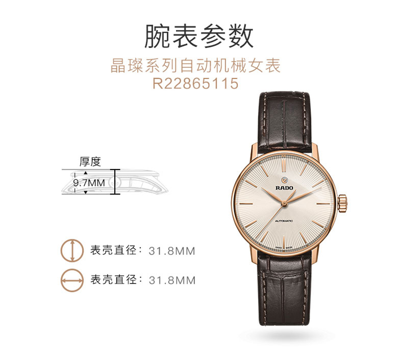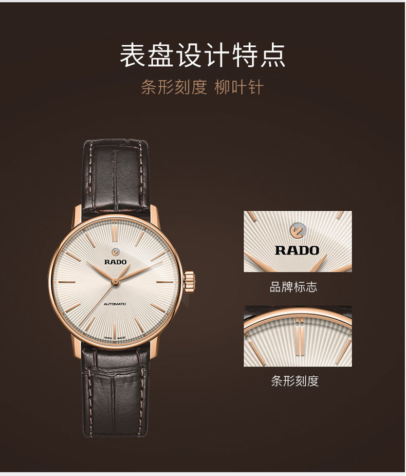 商品名称:雷达RADO 晶璨系列女士皮制表带情侣机械手表 R22865115