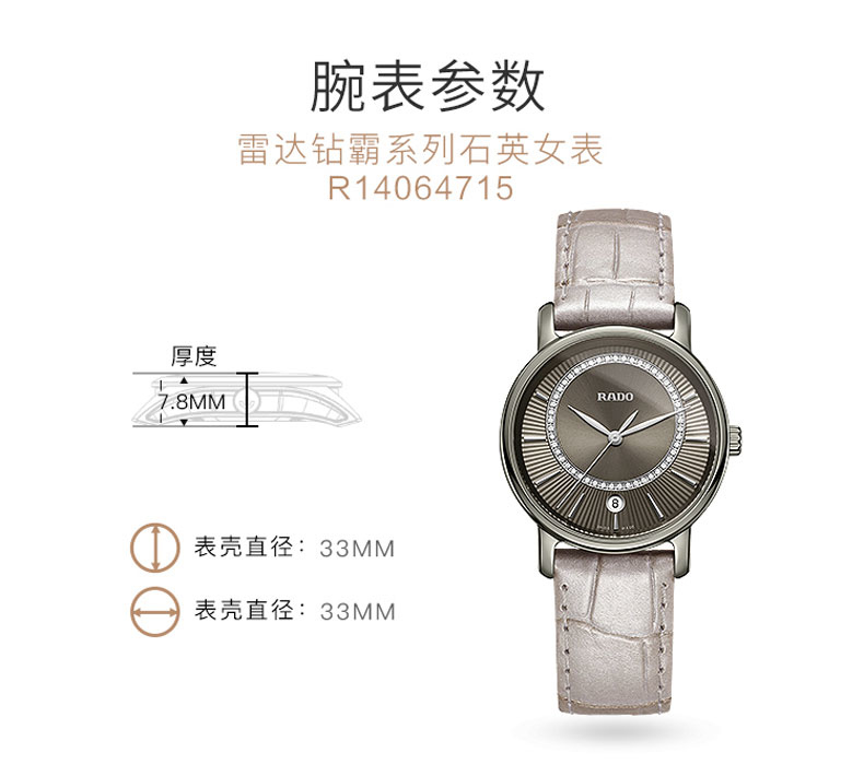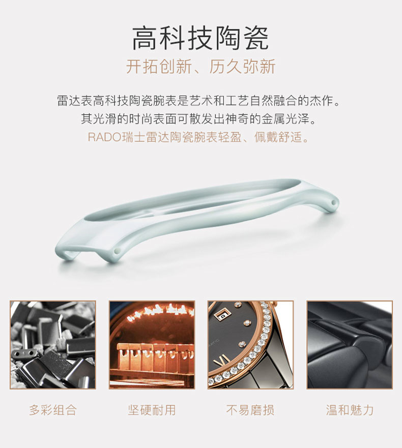商品名称:雷达RADO 钻霸系列女士金属陶瓷表壳石英钻表 R14064715