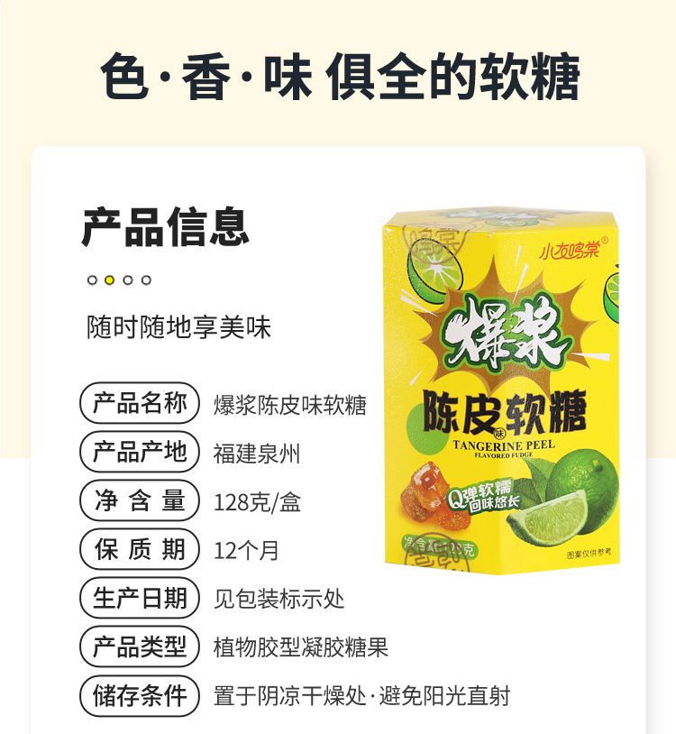 商品名称:小友鸣棠爆浆陈皮味软糖