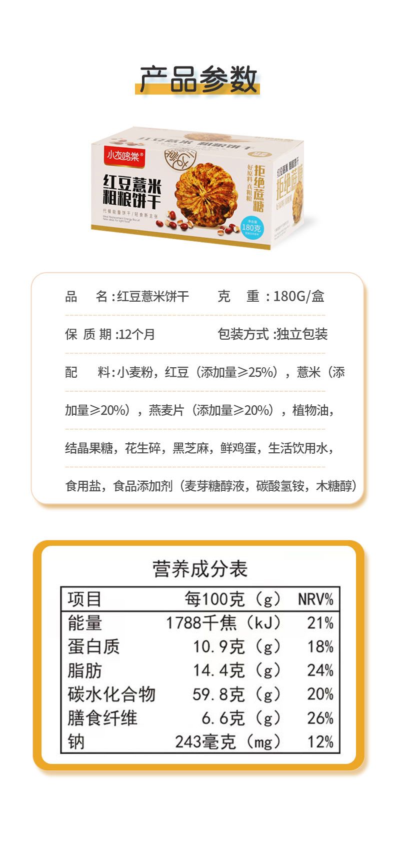 商品名称:小友鸣棠红豆薏米燕麦饼干 180g