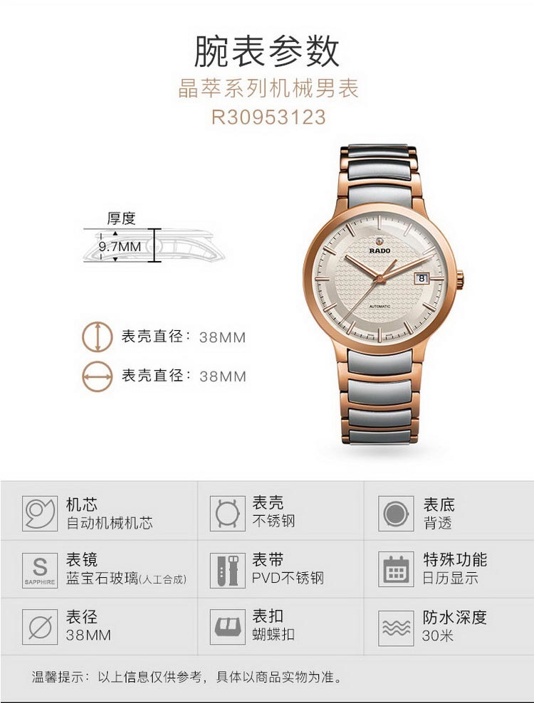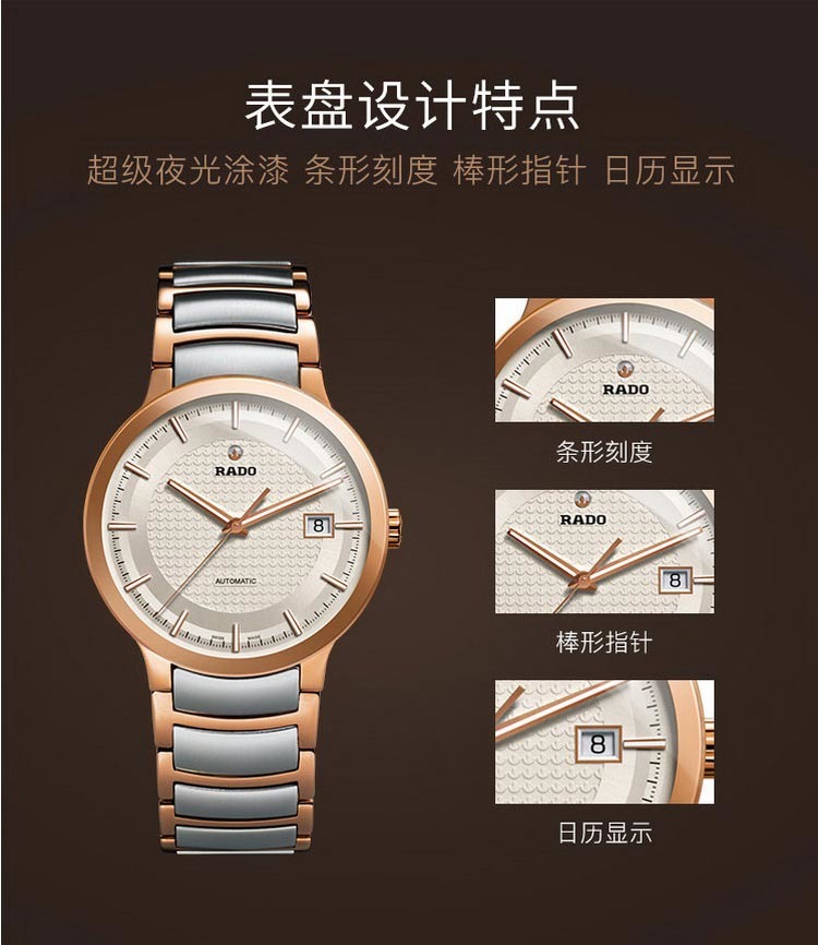 商品名称:雷达RADO 晶萃系列男士钢带机械手表 R30953123