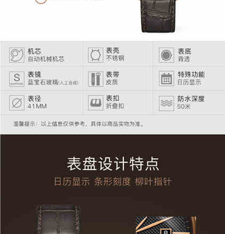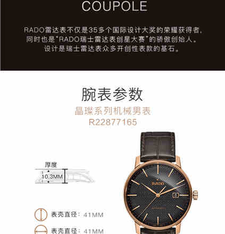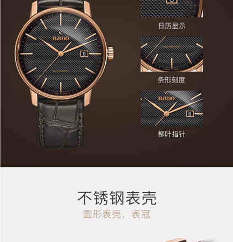 商品名称:雷达RADO 晶璨系列皮带款手表全自动机械男表(41mm) R22877165