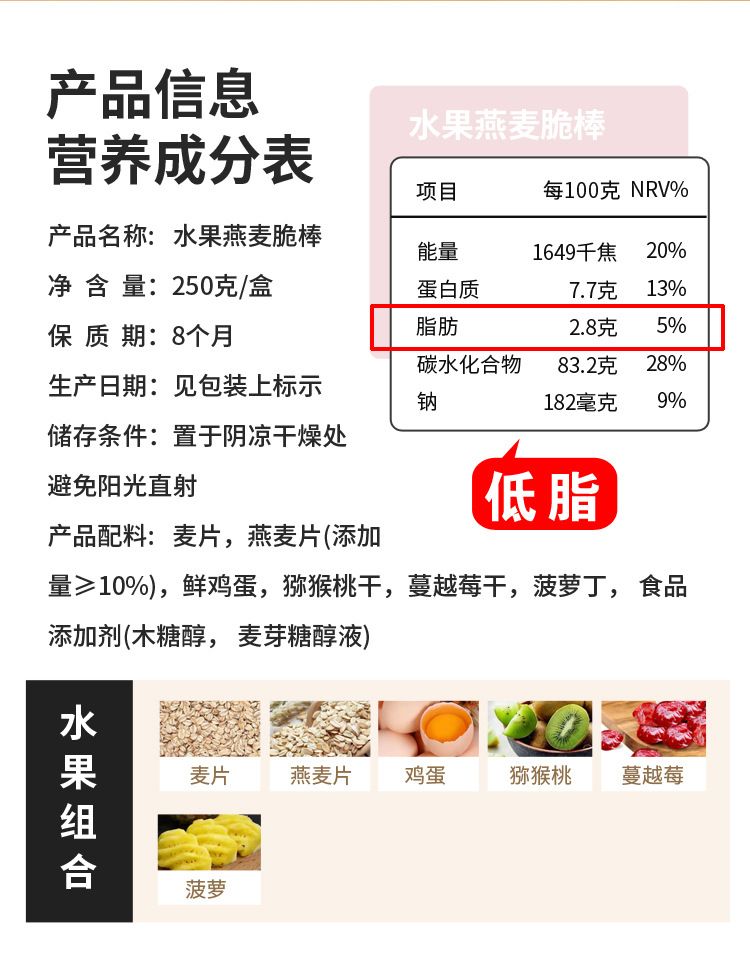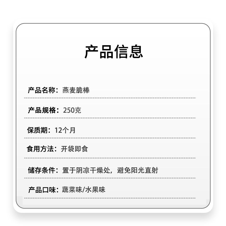 商品名称:小友鸣棠水果/蔬菜/坚果燕麦脆棒250g