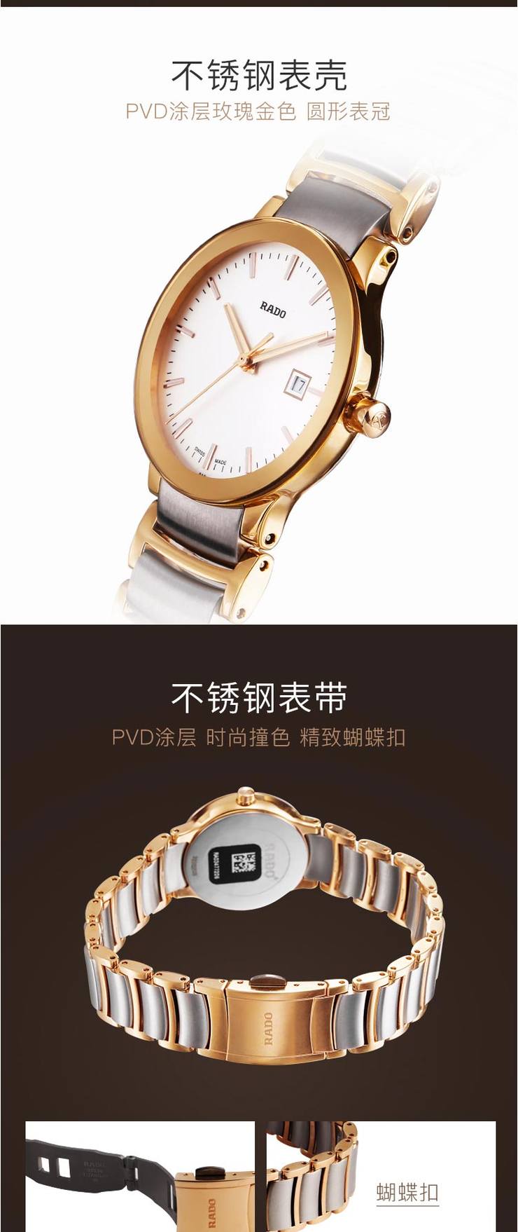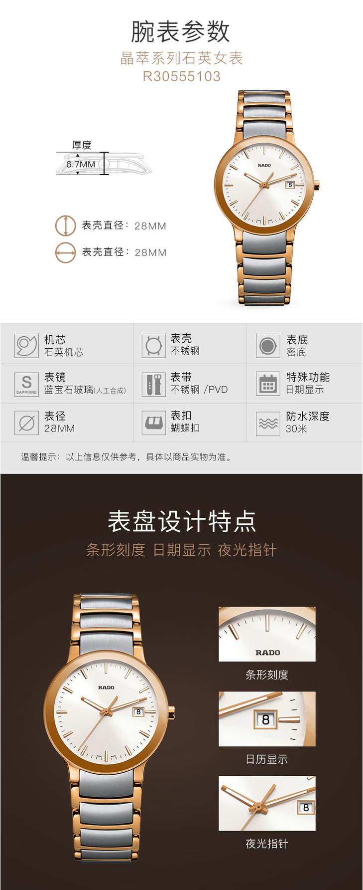 商品名称:雷达RADO 晶萃系列石英情侣手表钢带女表 R30555103