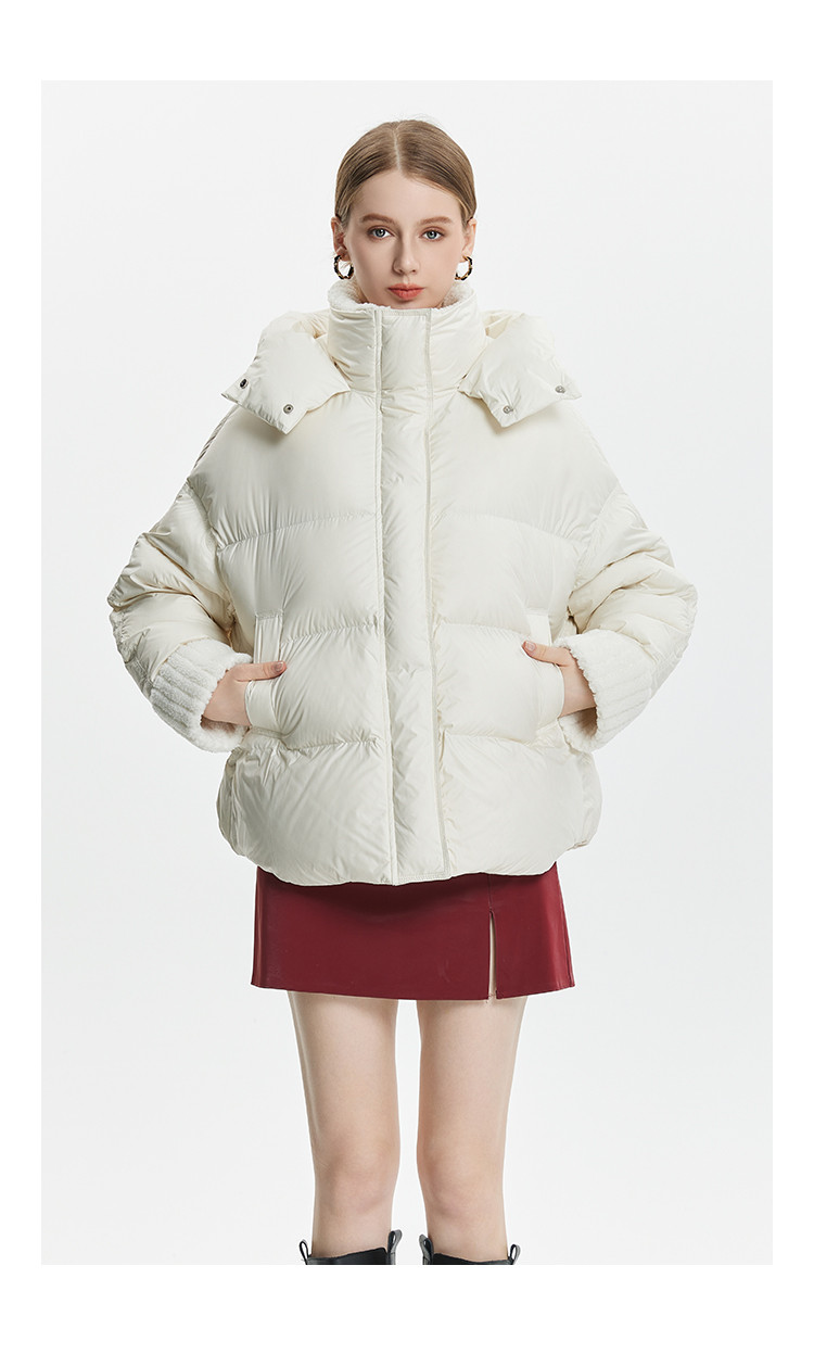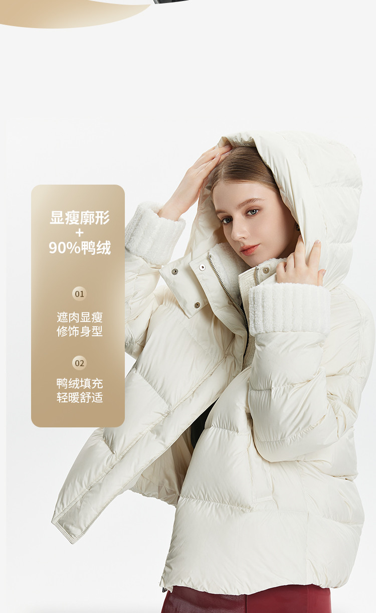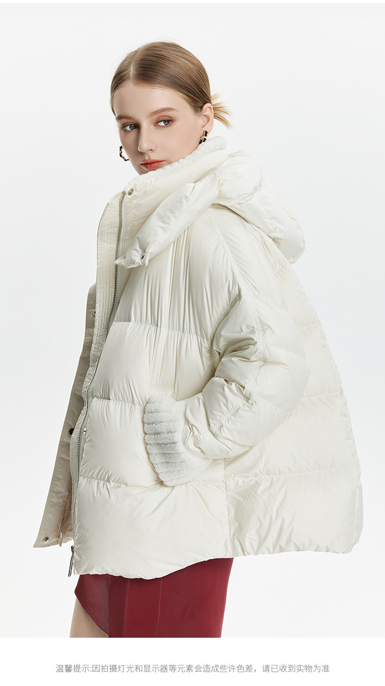 商品名称:泡芙感小个子直筒厚款连帽面包服女式短款羽绒服 493599