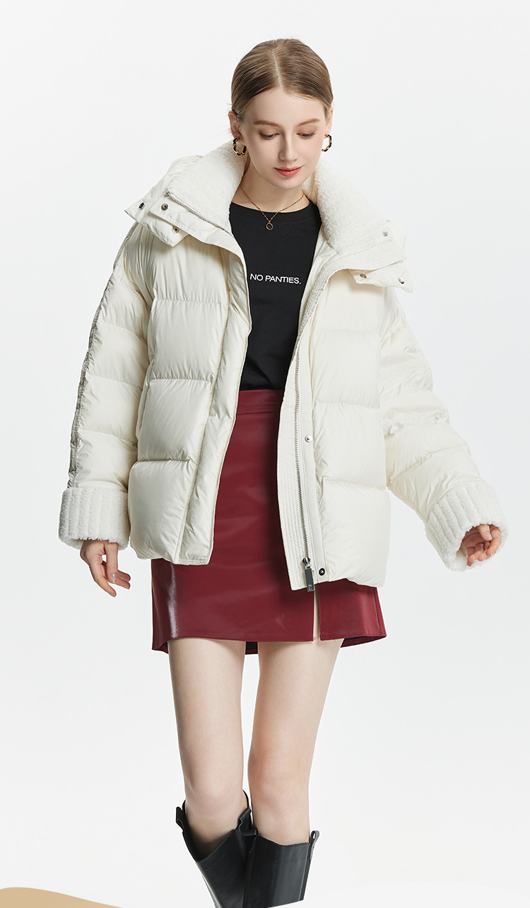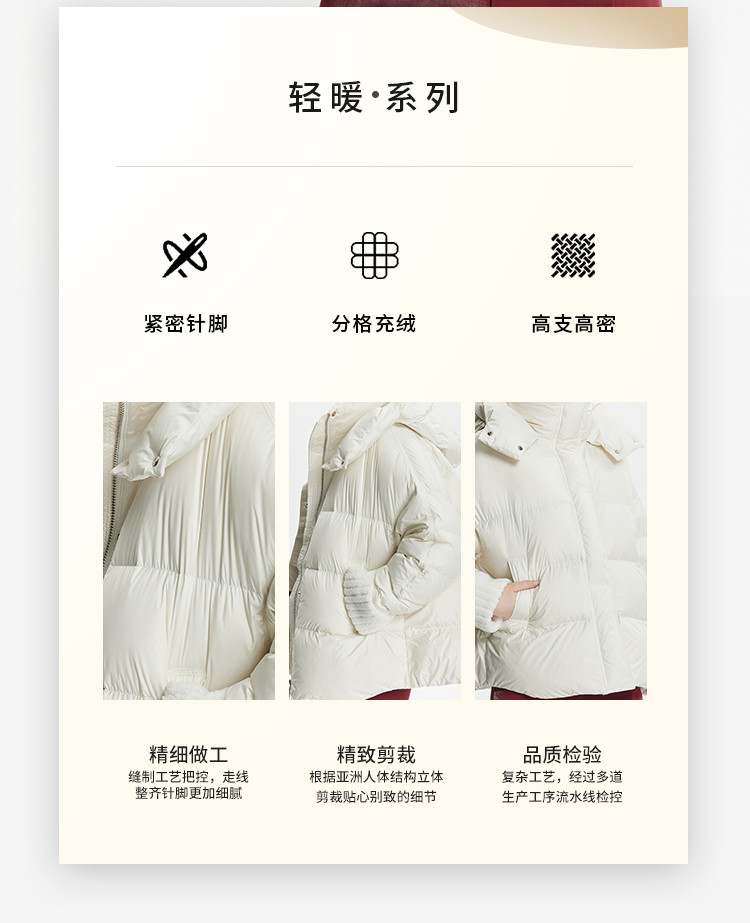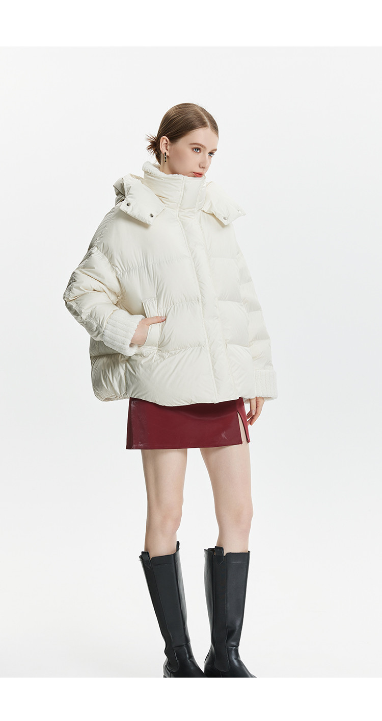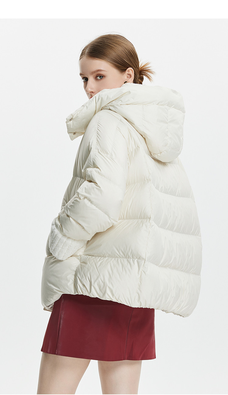 商品名称:泡芙感小个子直筒厚款连帽面包服女式短款羽绒服 493599