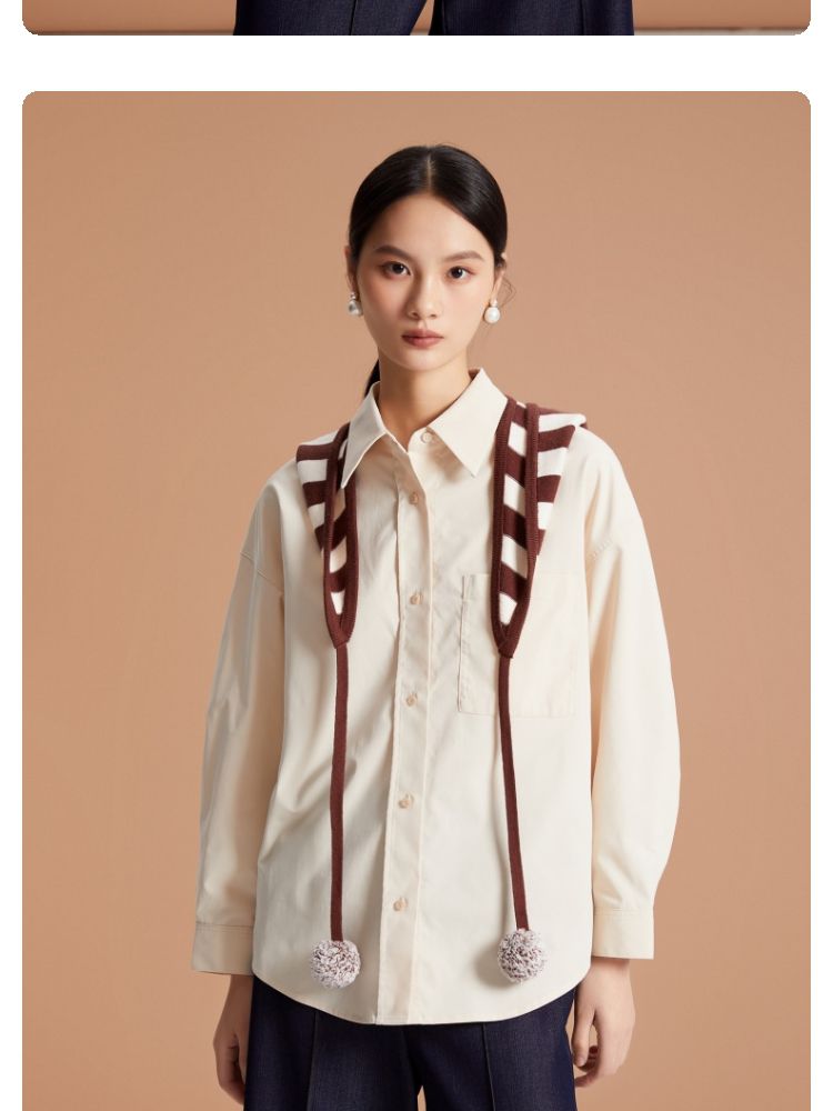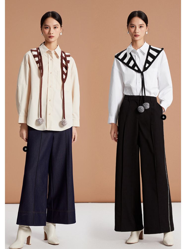 商品名称:衬衫女慵懒宽松可拆卸条纹装饰 371473