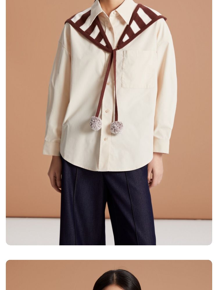 衬衫女慵懒宽松可拆卸条纹装饰 371473