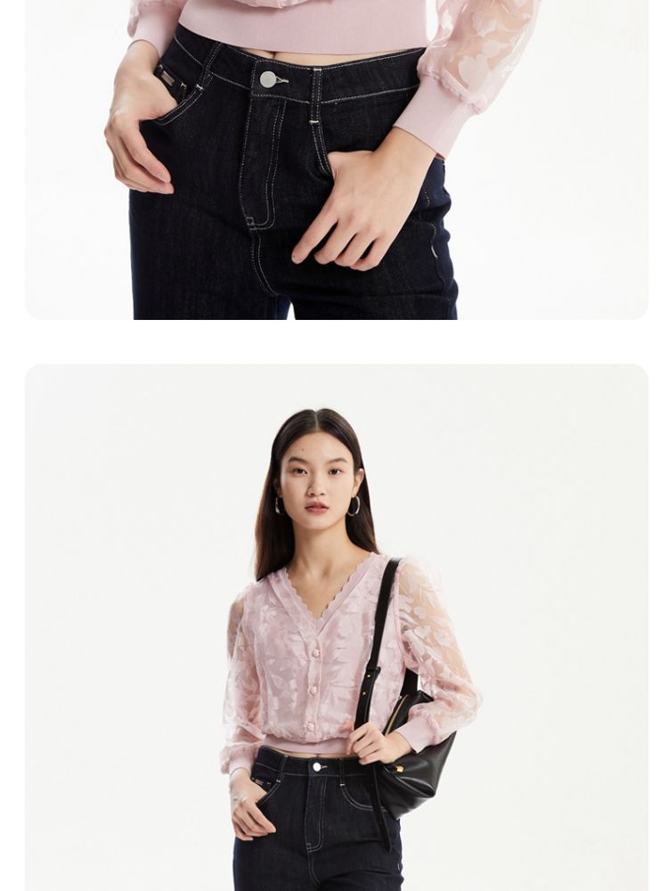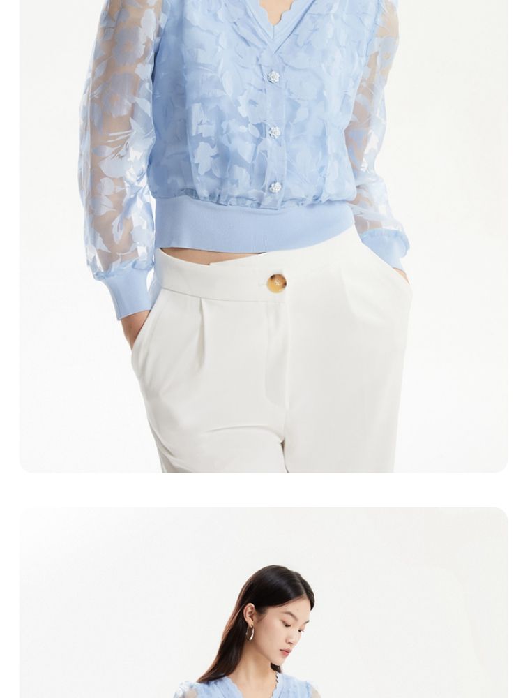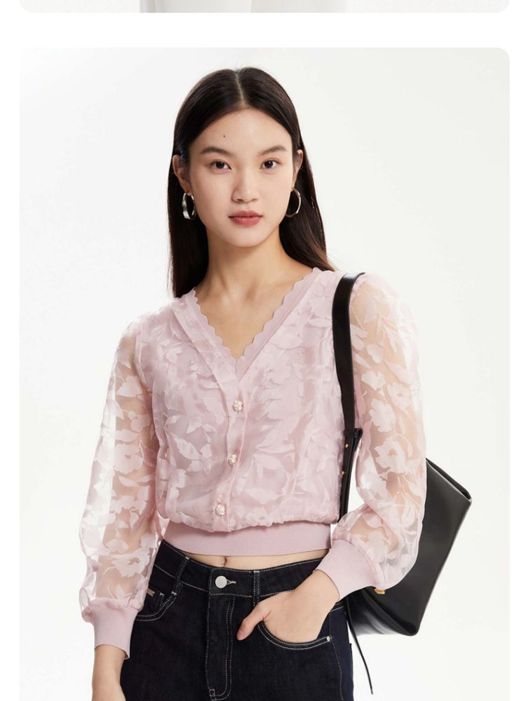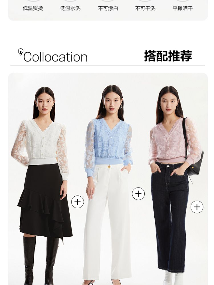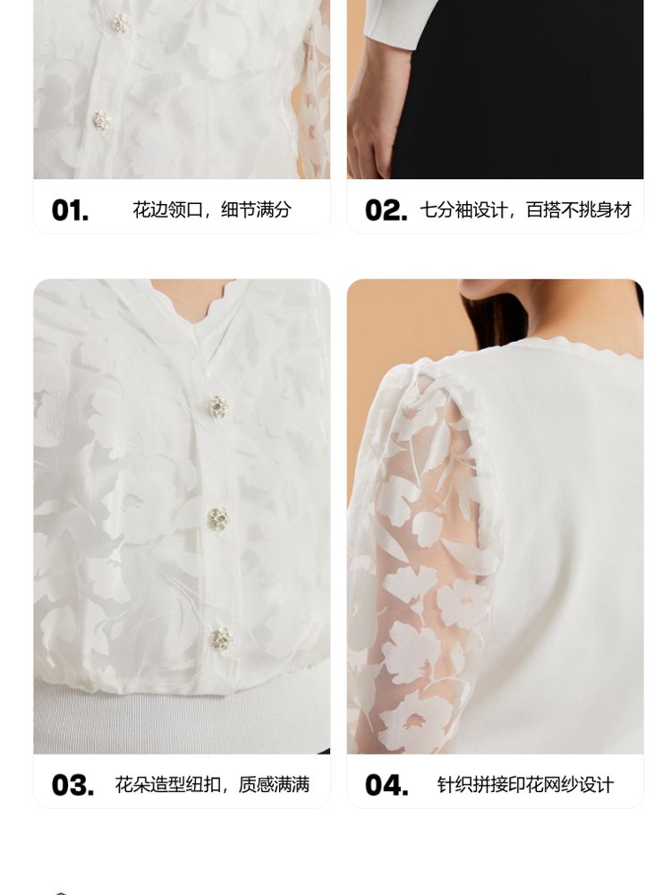 商品名称:【专柜】春夏优雅甜美七分袖纯色针织开衫女气质百搭时尚 887569