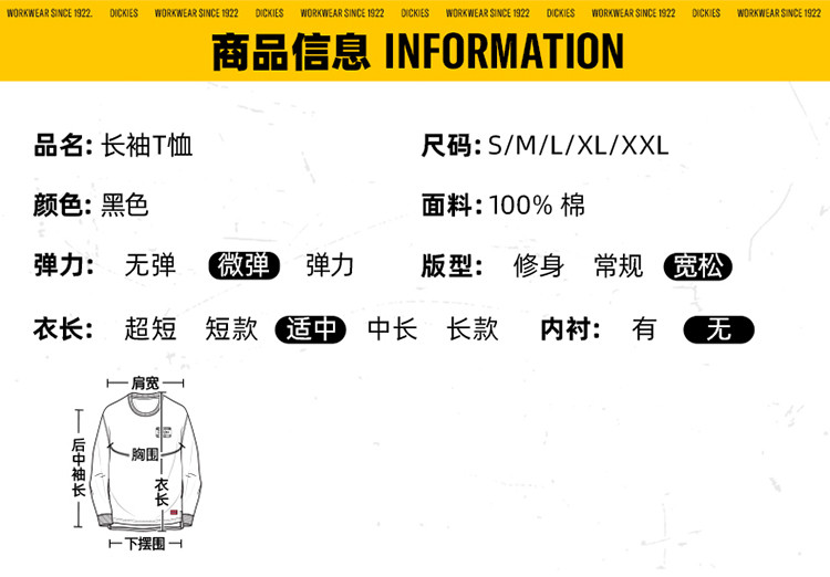 商品名称:Dickies全棉印花长袖T恤春夏卫衣 DK010986 193744