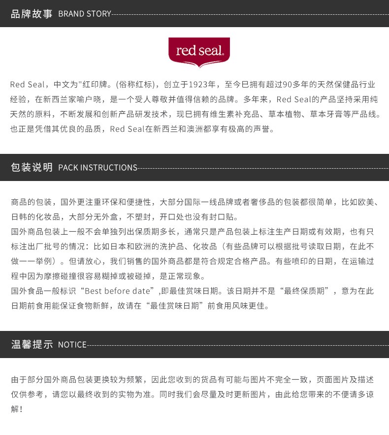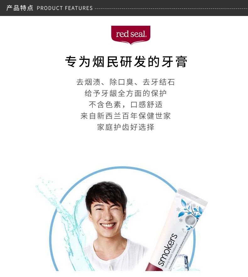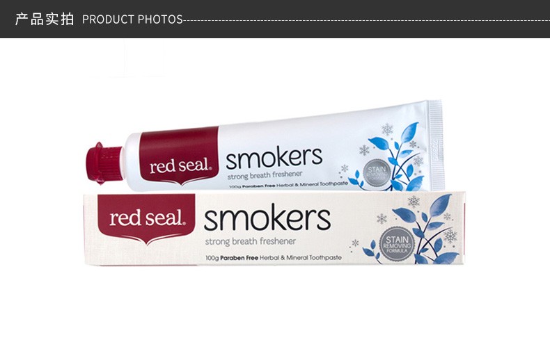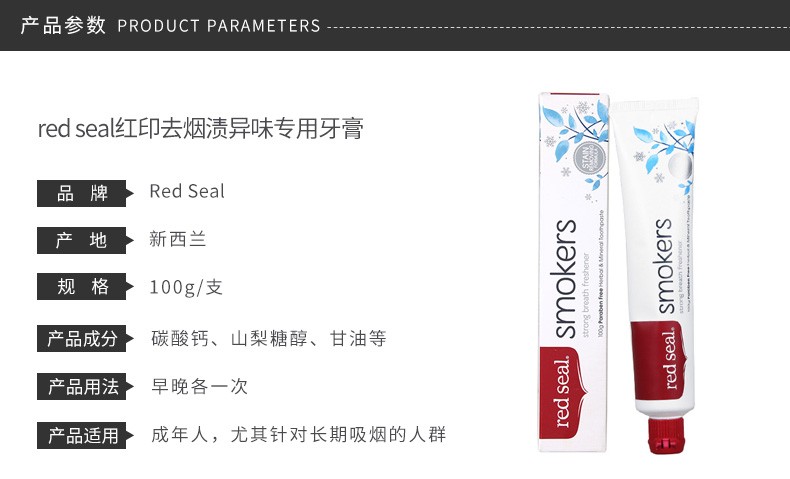 商品名称:RED SEAL/红印 去烟渍异味专用烟民牙膏 100G