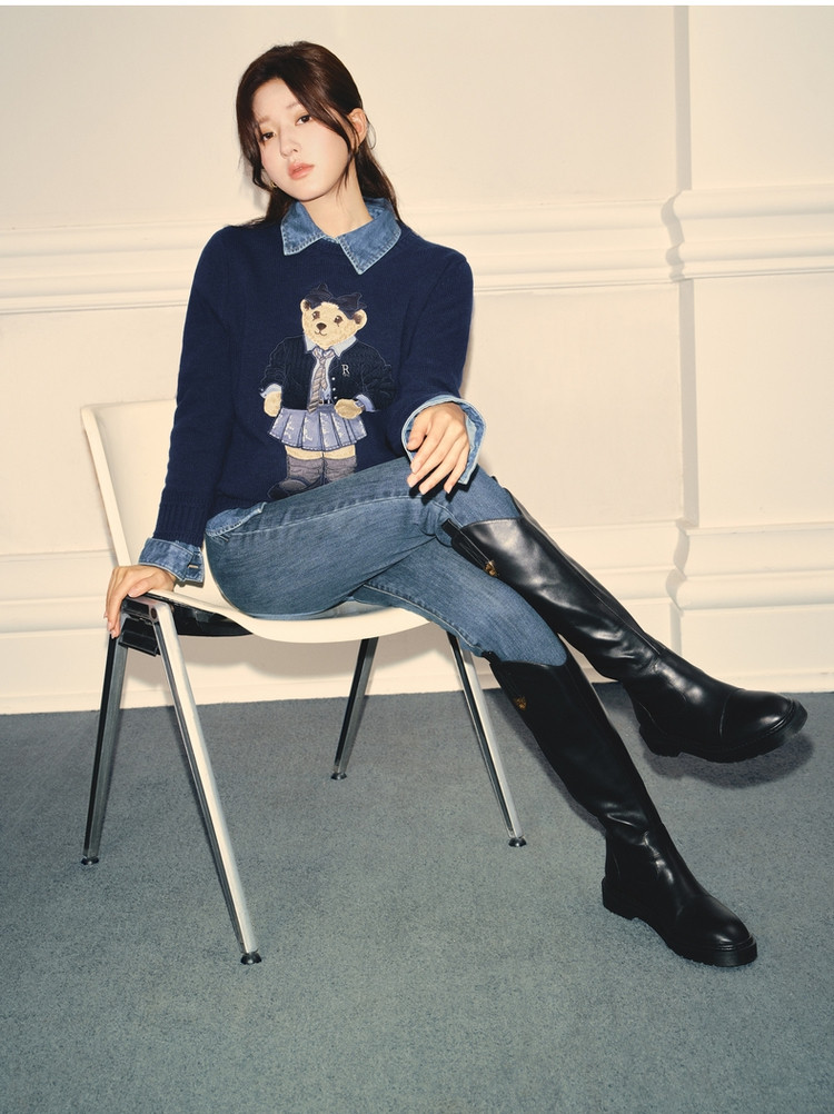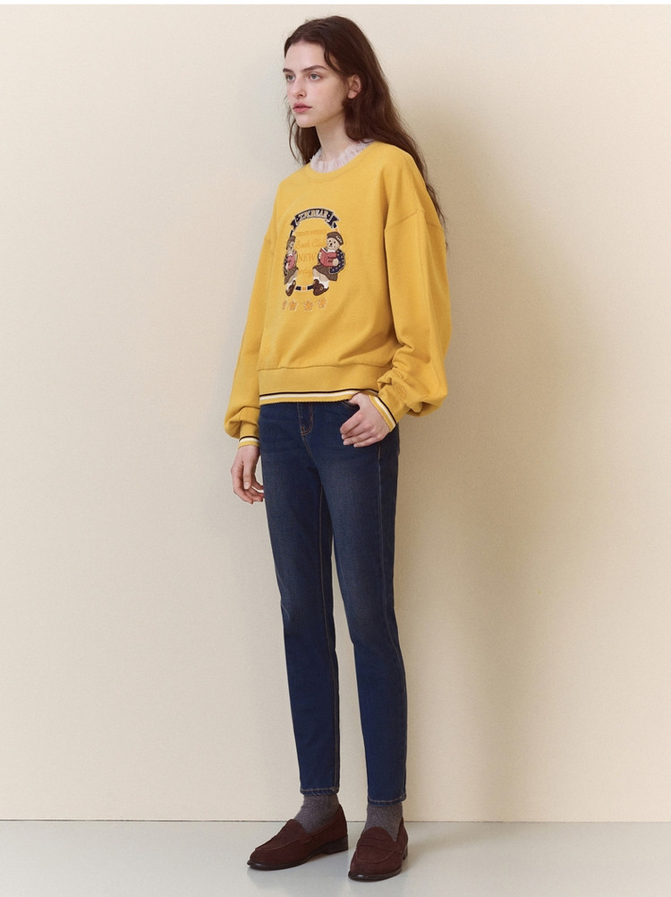 【赵露思同款】小熊春秋款牛仔裤铅笔长裤女 796097