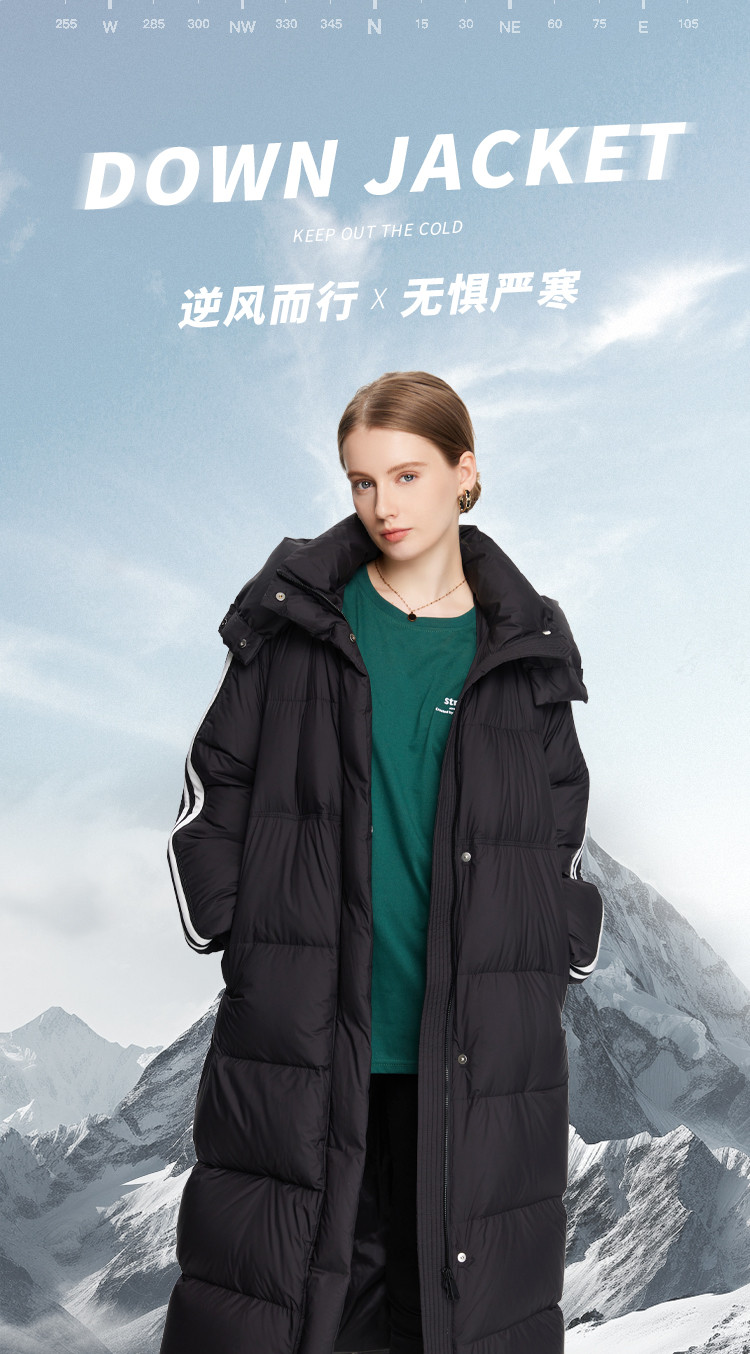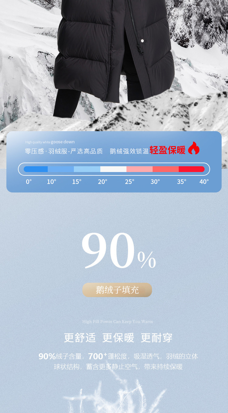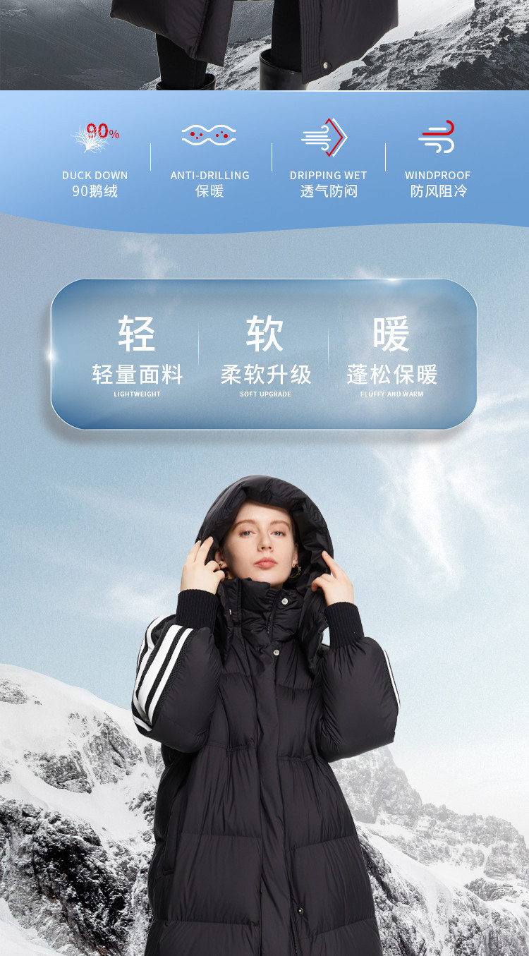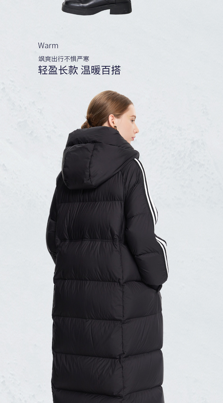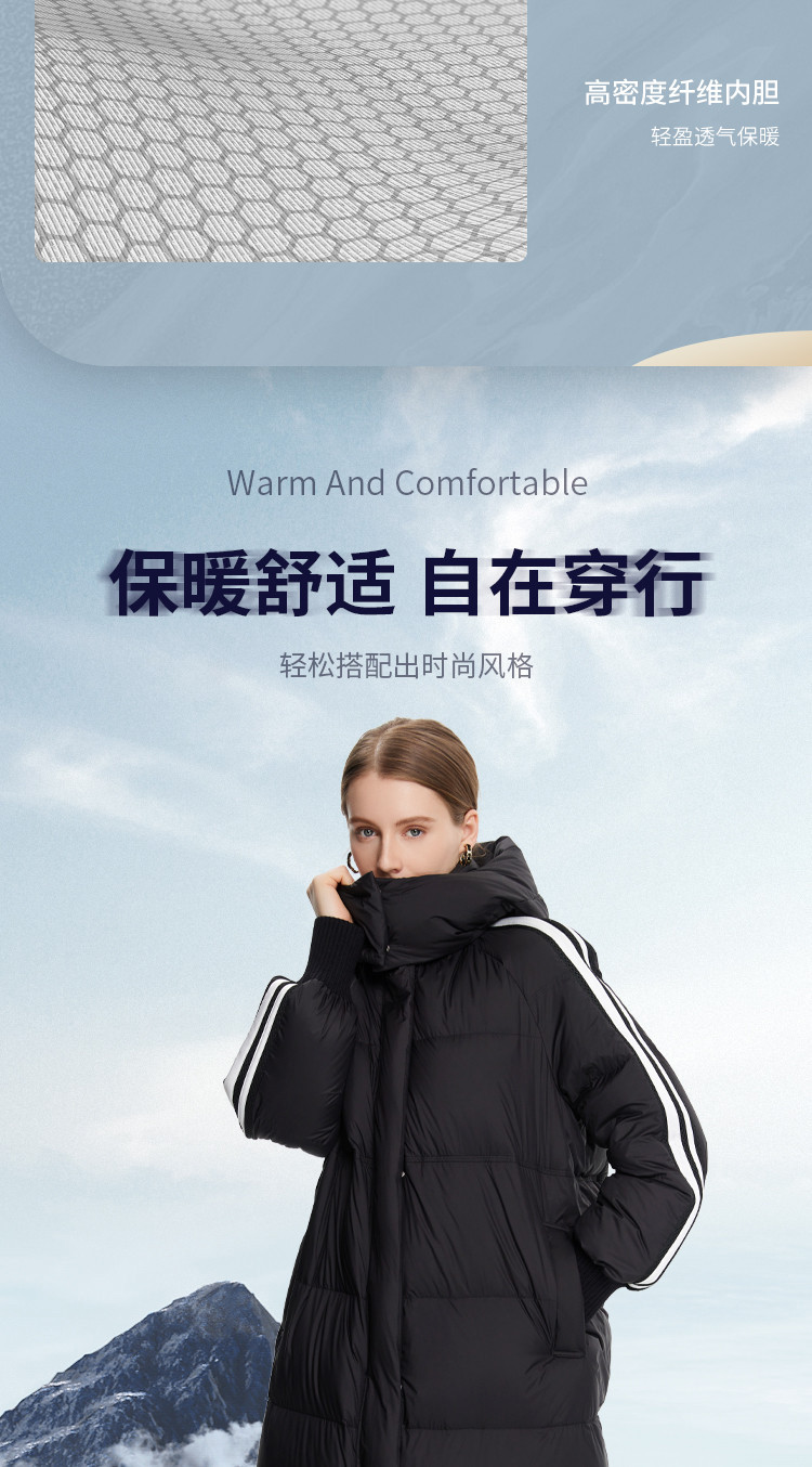 商品名称:【鹅绒】运动风带帽面包服宽松过膝长款女式羽绒服 625119