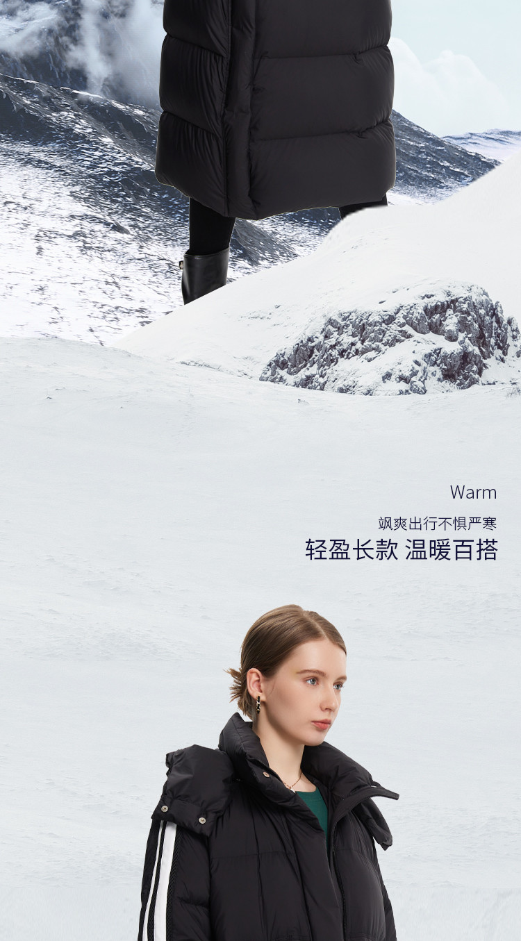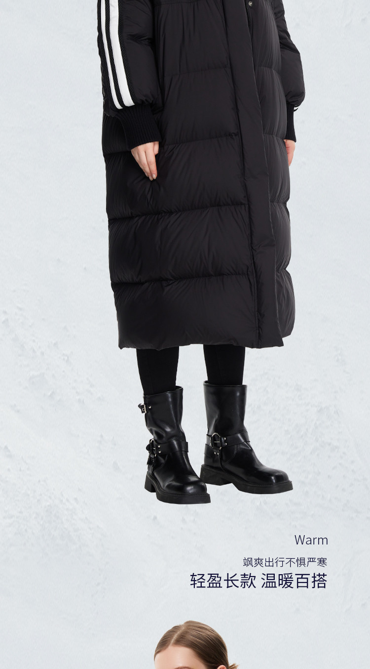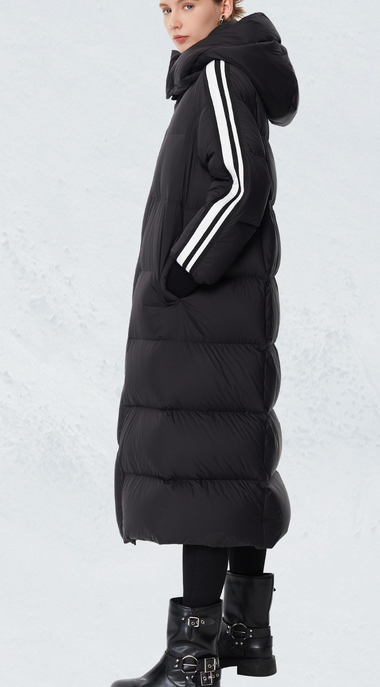 【鹅绒】运动风带帽面包服宽松过膝长款女式羽绒服 625119