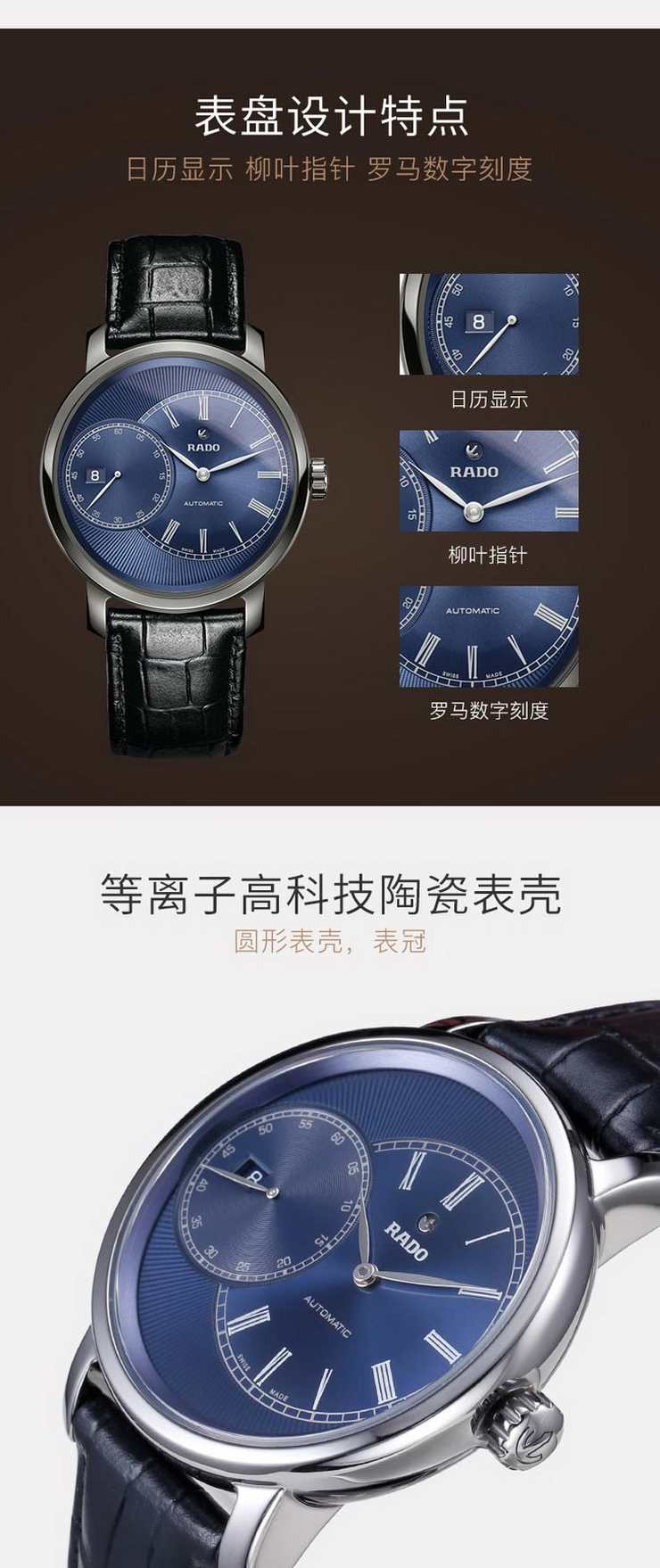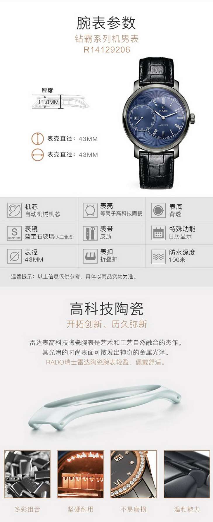 商品名称:雷达RADO 钻霸系列男士皮制表带大秒针机械手表 R14129206