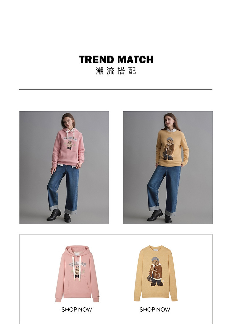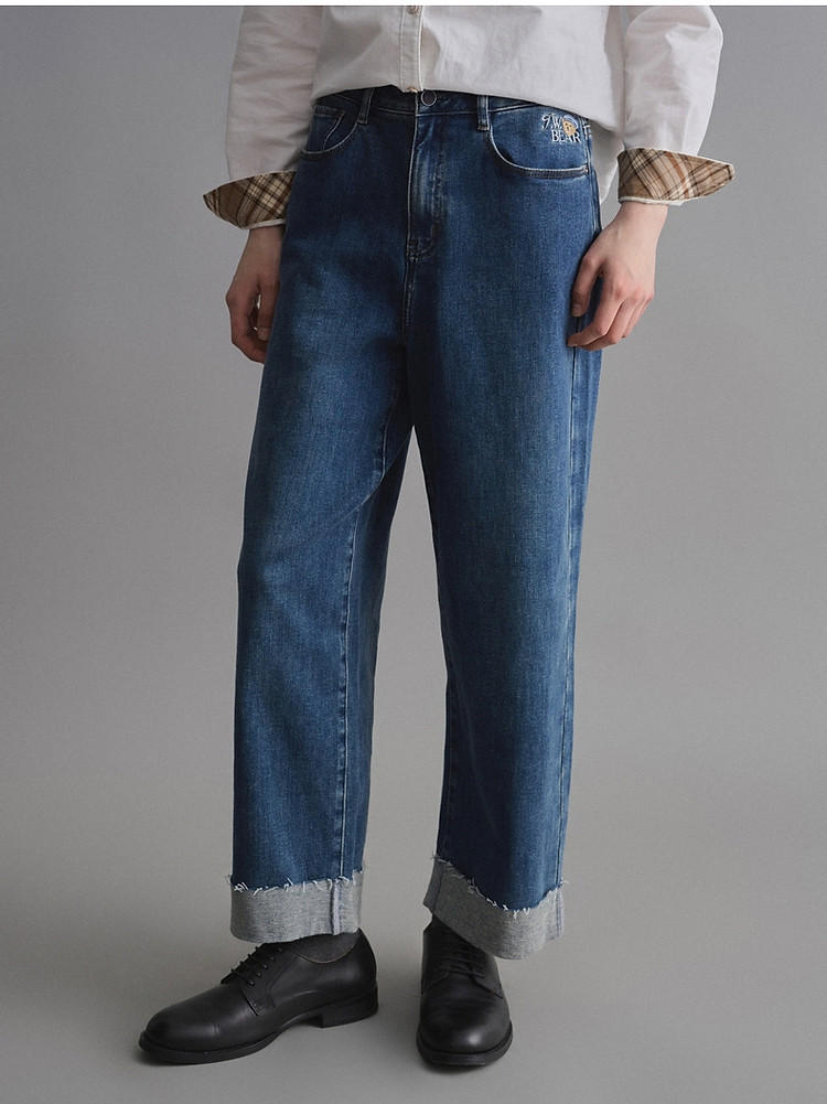 小熊女装冬季简约时髦宽松舒适牛仔裤通勤长裤子 544961