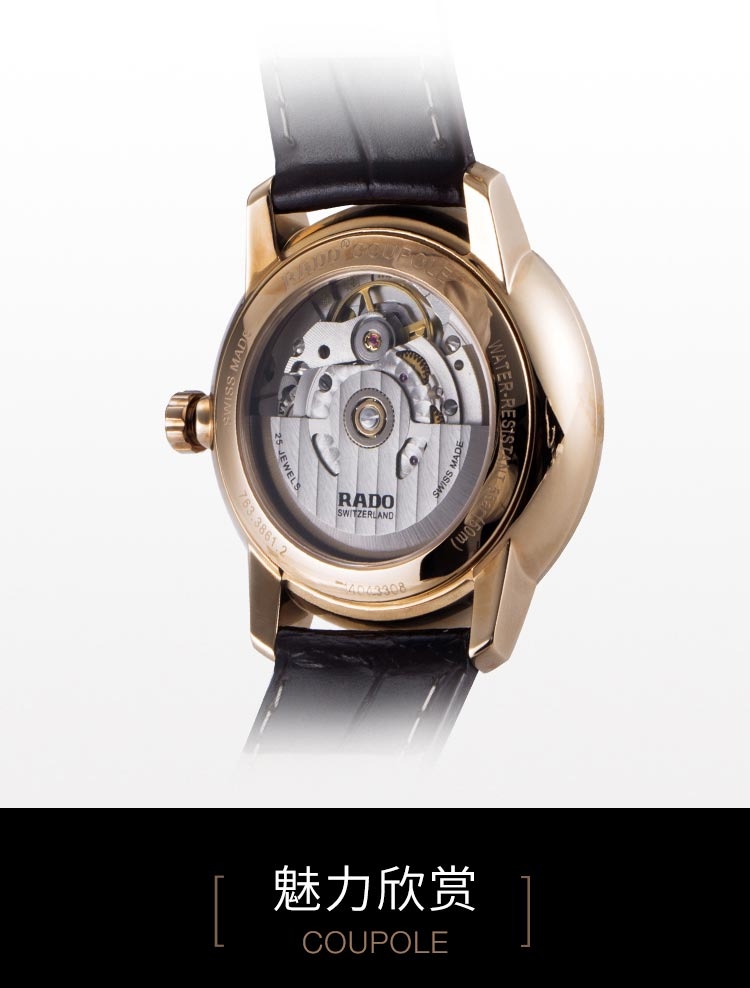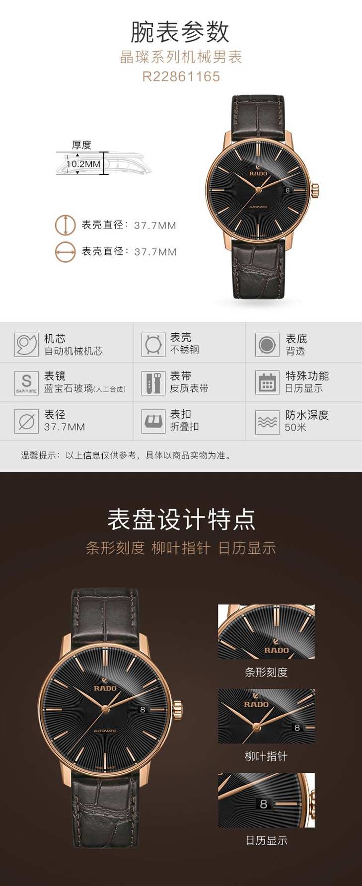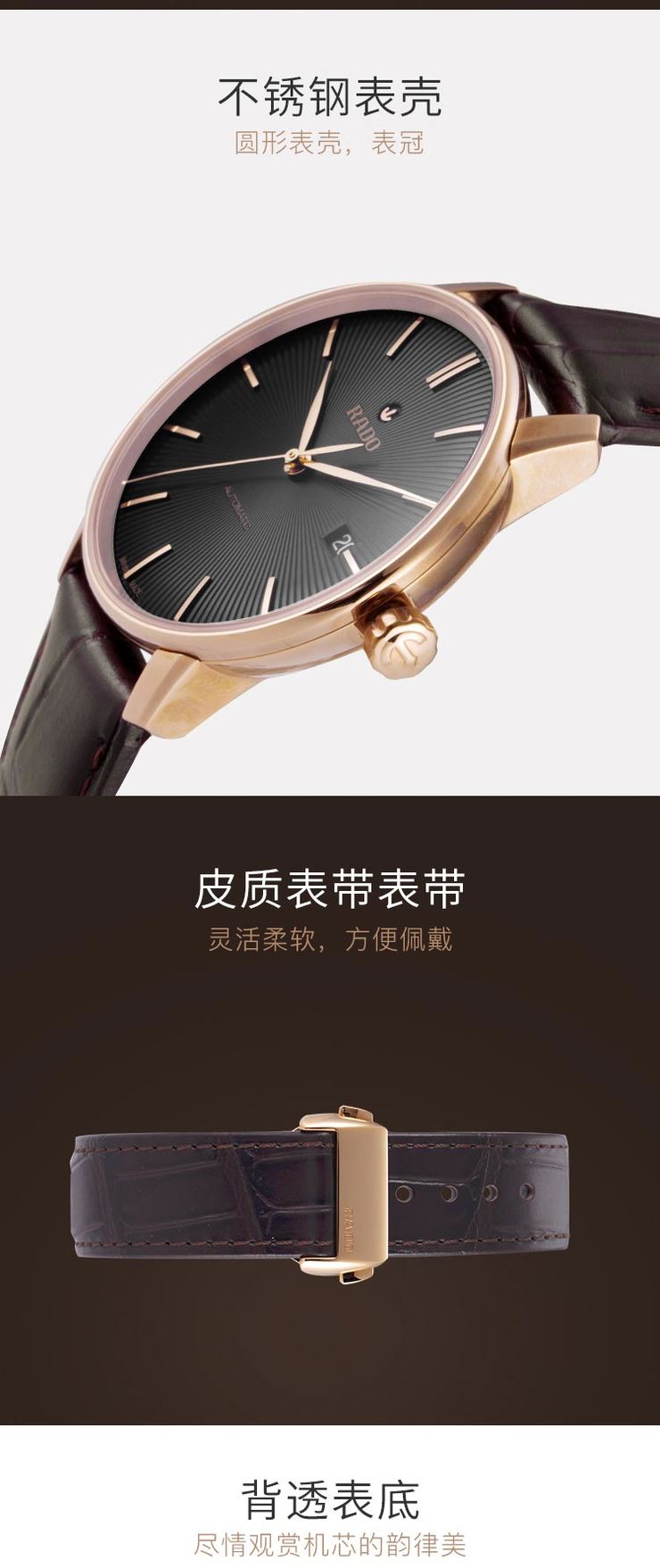 商品名称:雷达RADO 晶璨系列皮带款手表全自动机械男表(37.7mm) R22861165