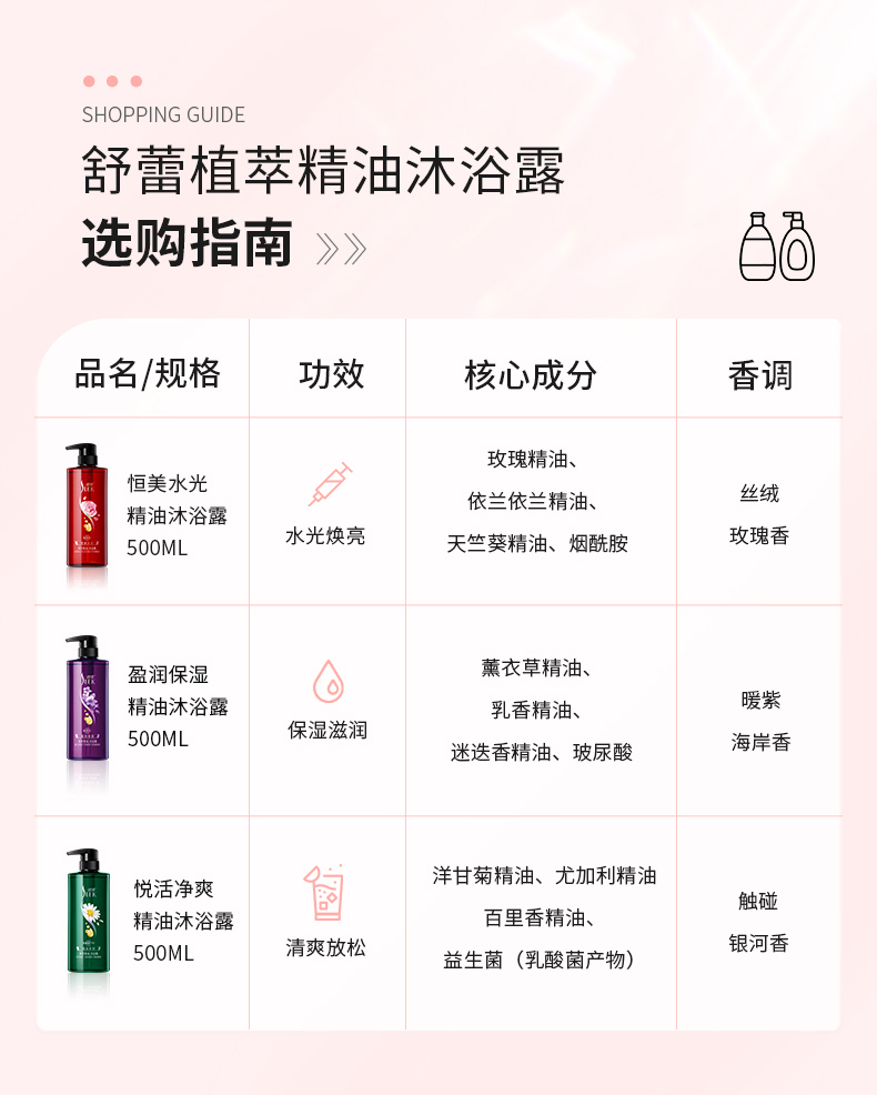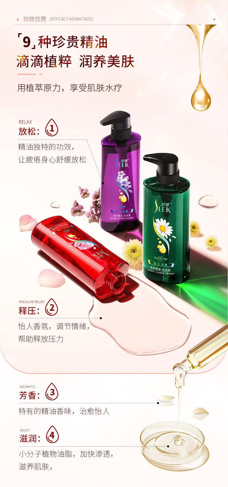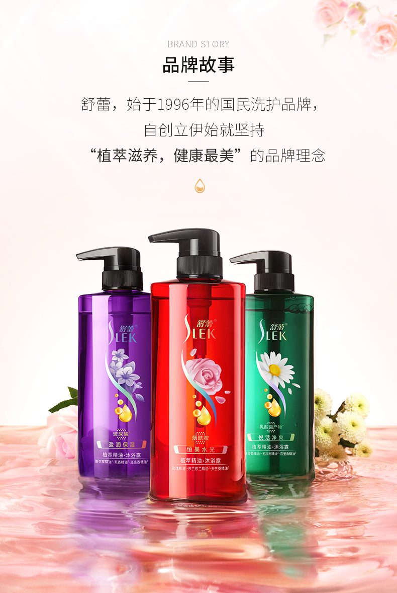 商品名称:Slek/舒蕾 盈润保湿植萃精油沐浴露 500ml/800ml