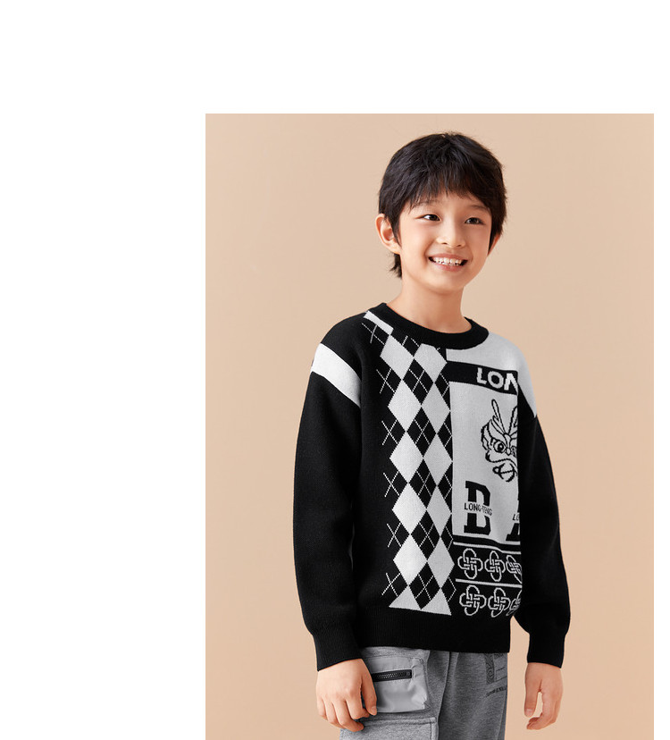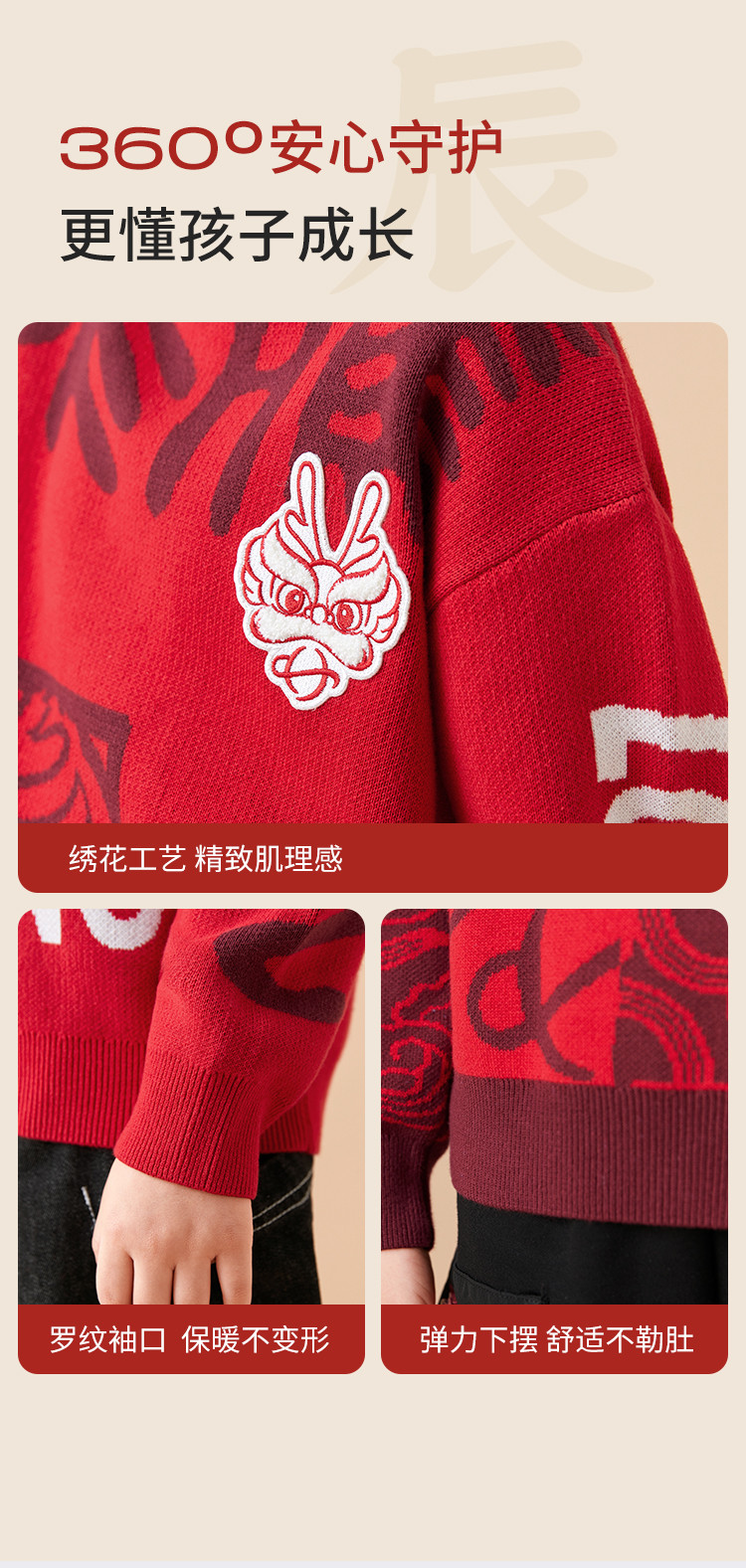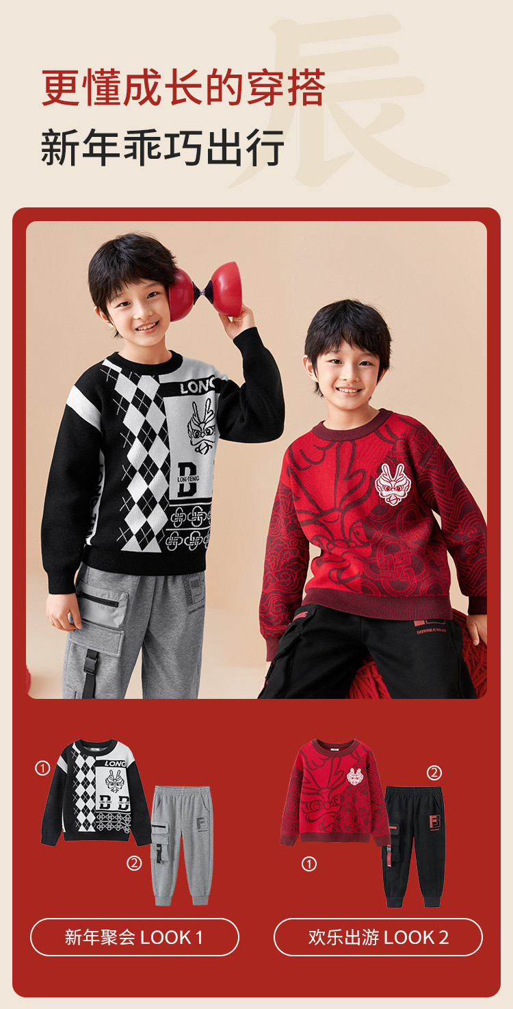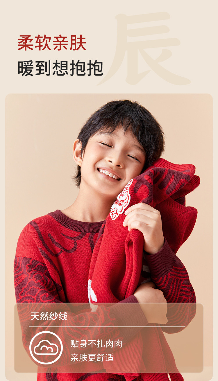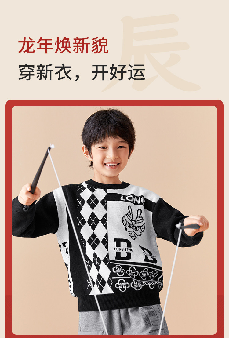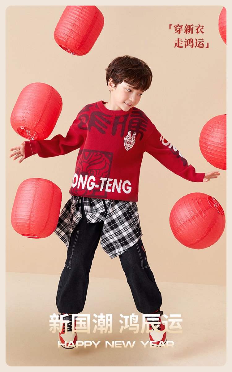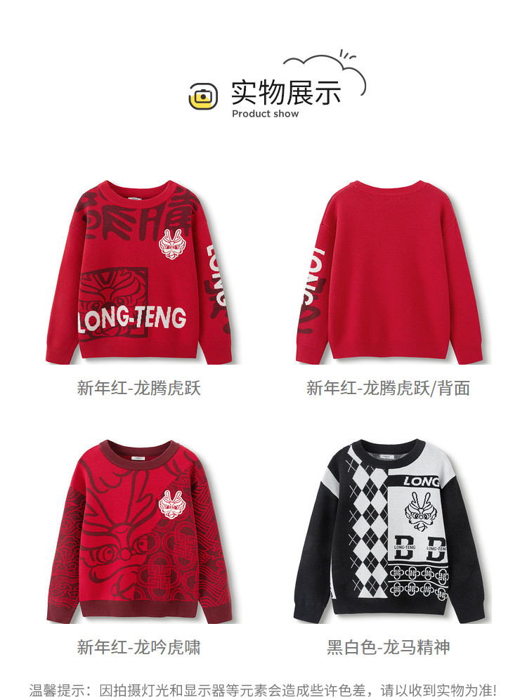 商品名称:国风龙年提花纯棉春秋童装儿童针织衫中大童圆领毛衫男童红色上衣 395333
