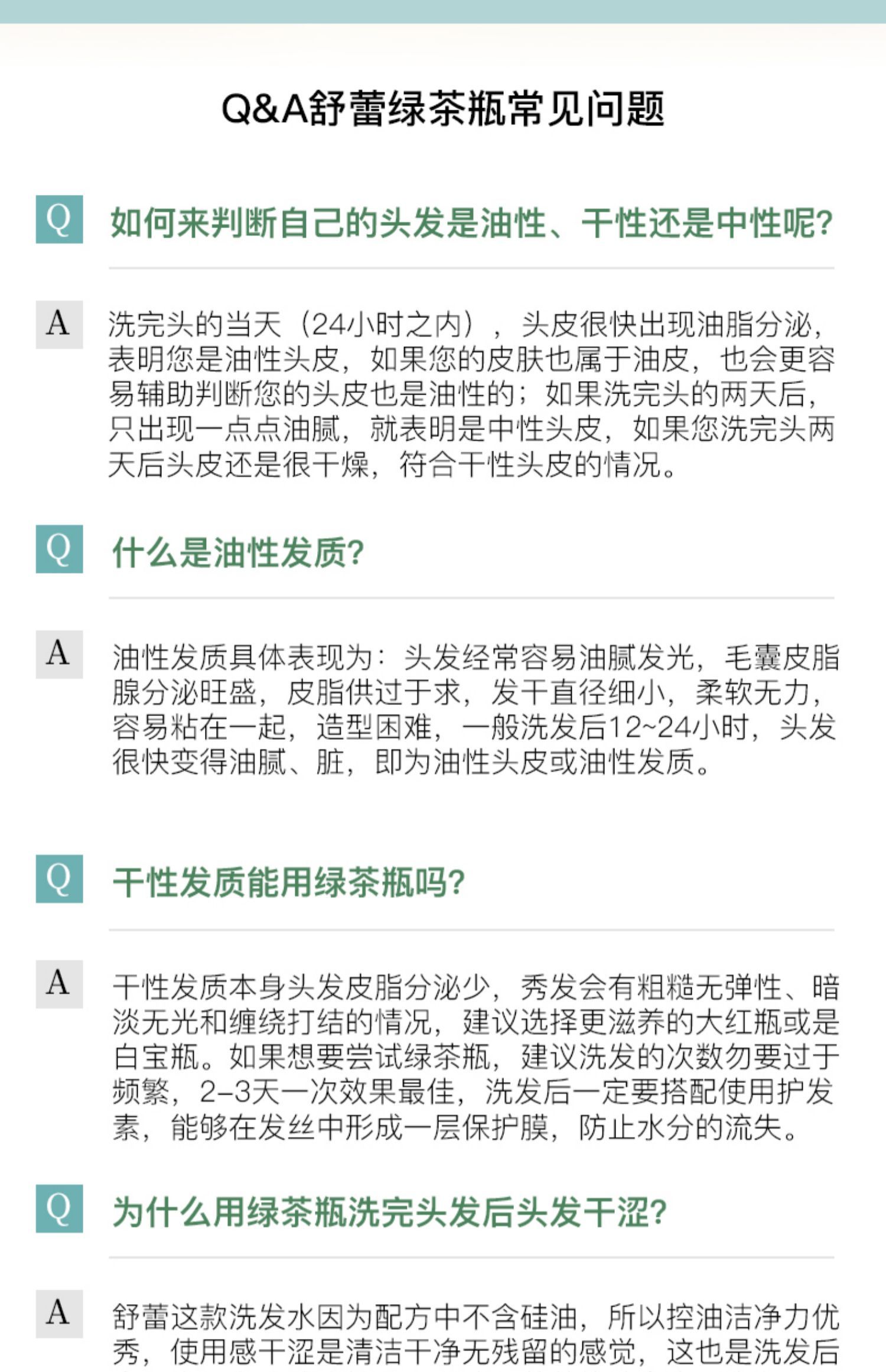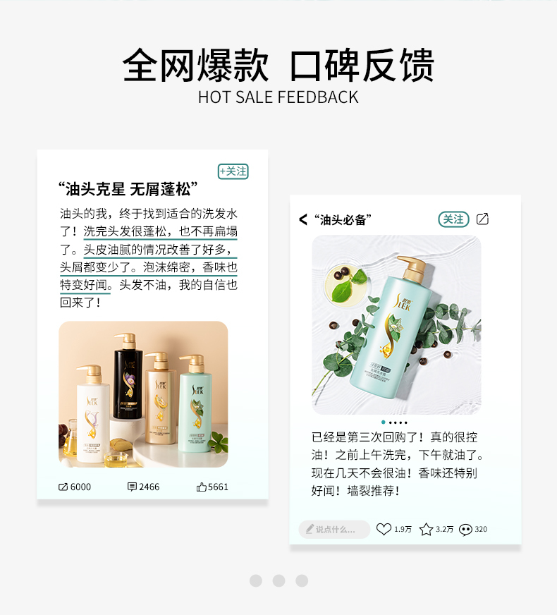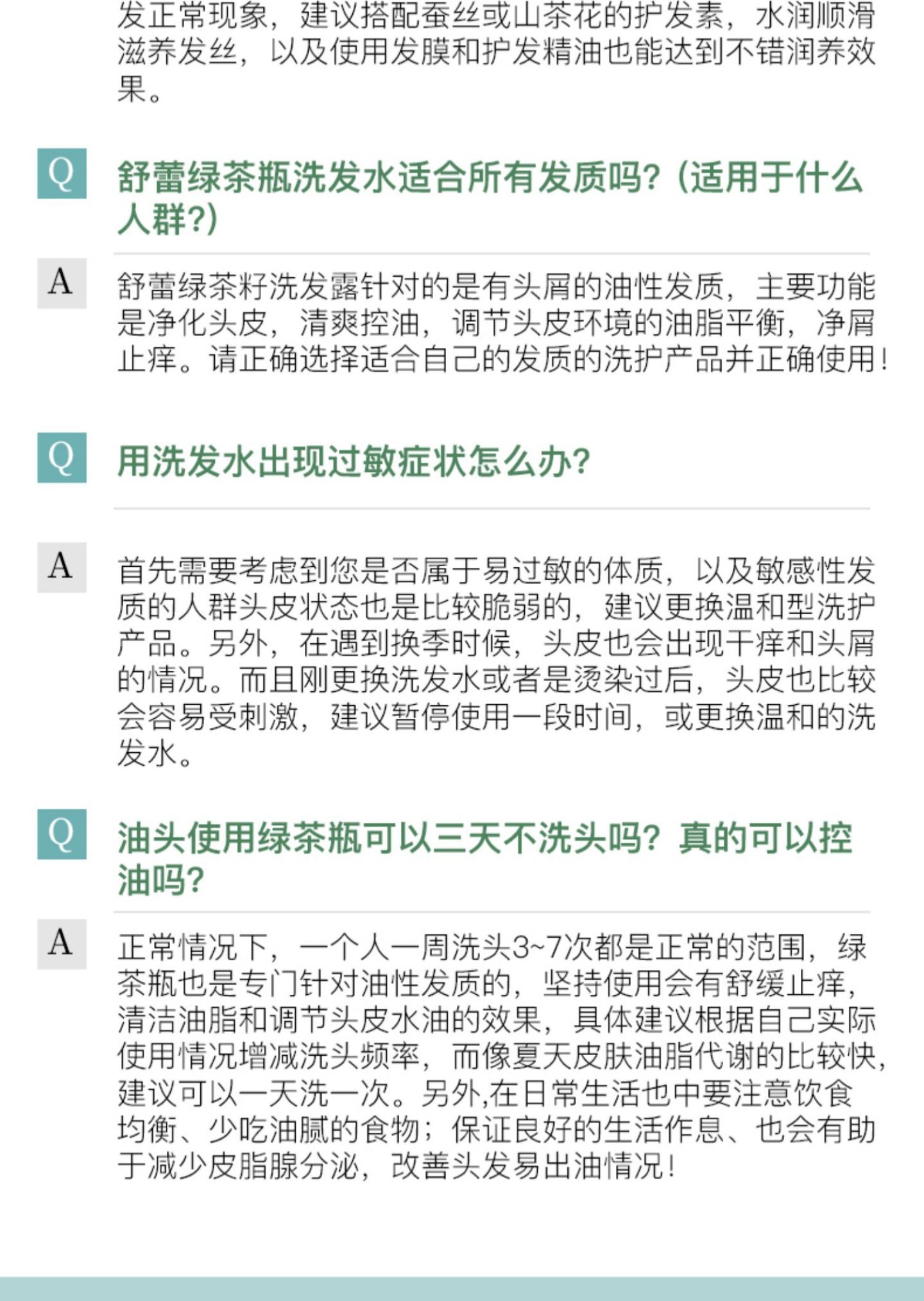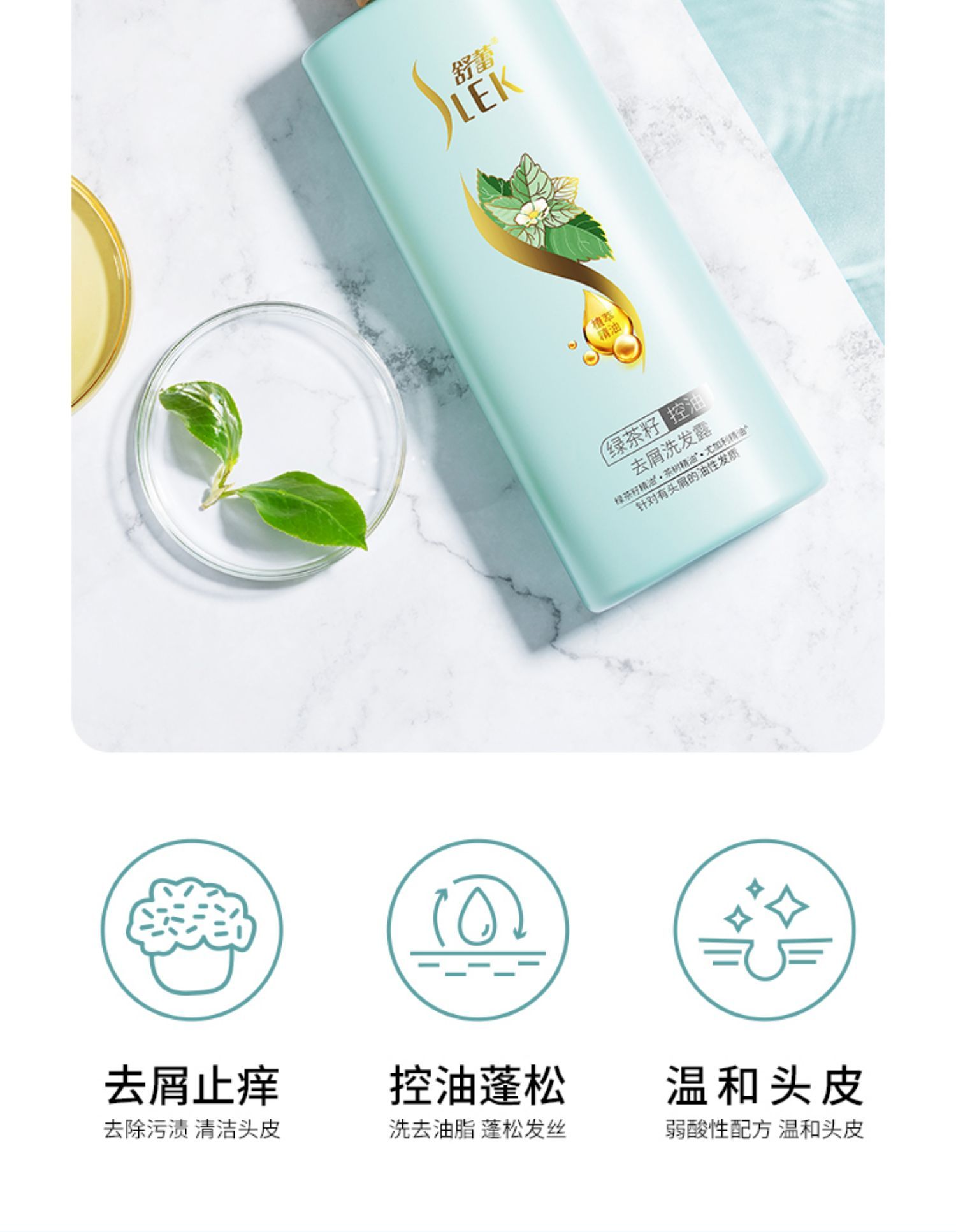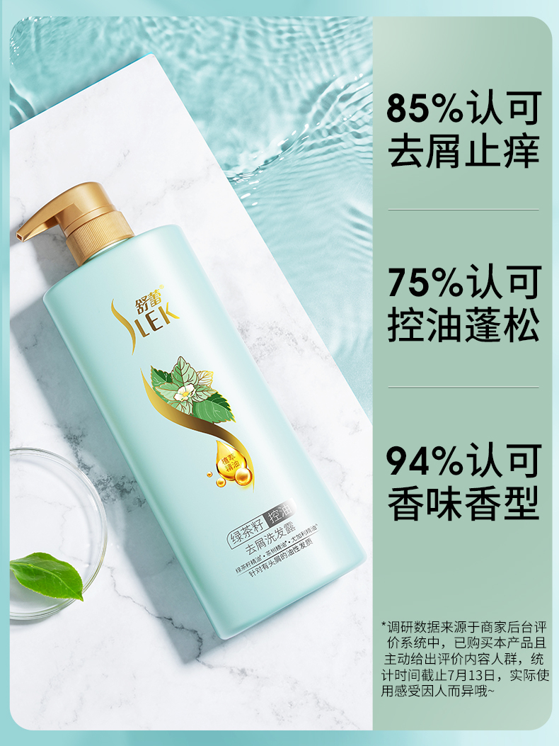 商品名称:Slek/舒蕾 绿茶籽控油去屑洗发水500ml+蚕丝保湿顺滑护发素500ml