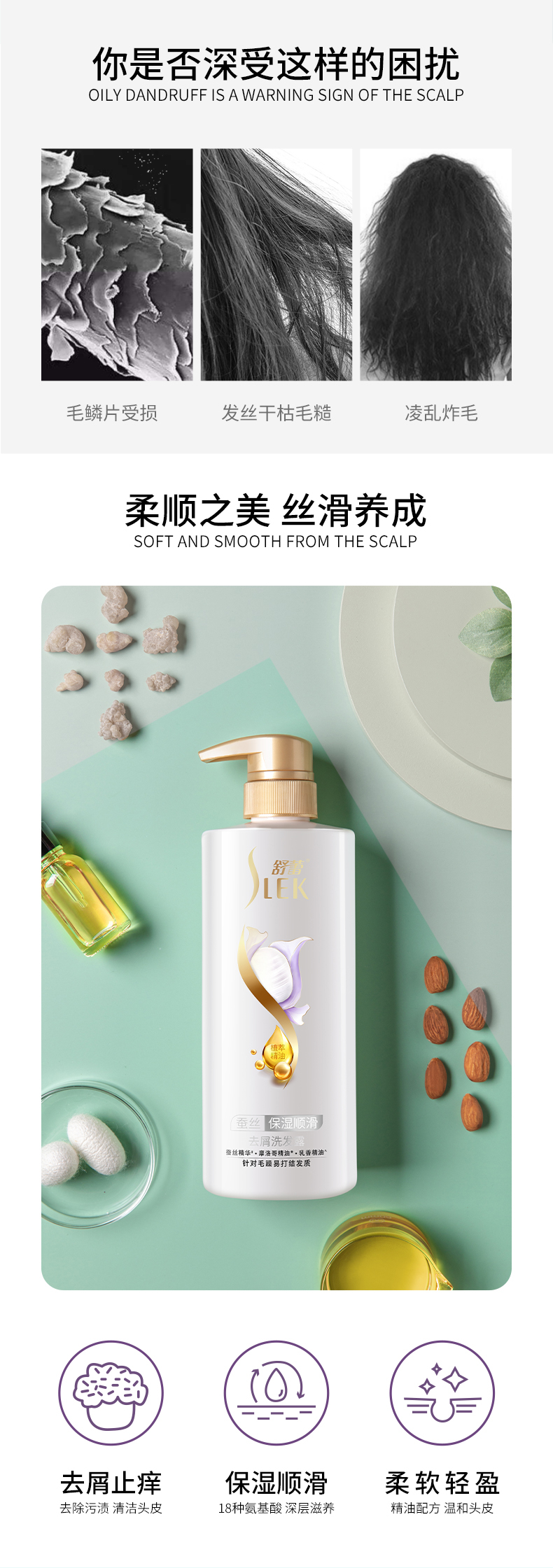 商品名称:Slek/舒蕾 蚕丝洗护套装头皮清洁护理 洗头水500ml+护发素500ml