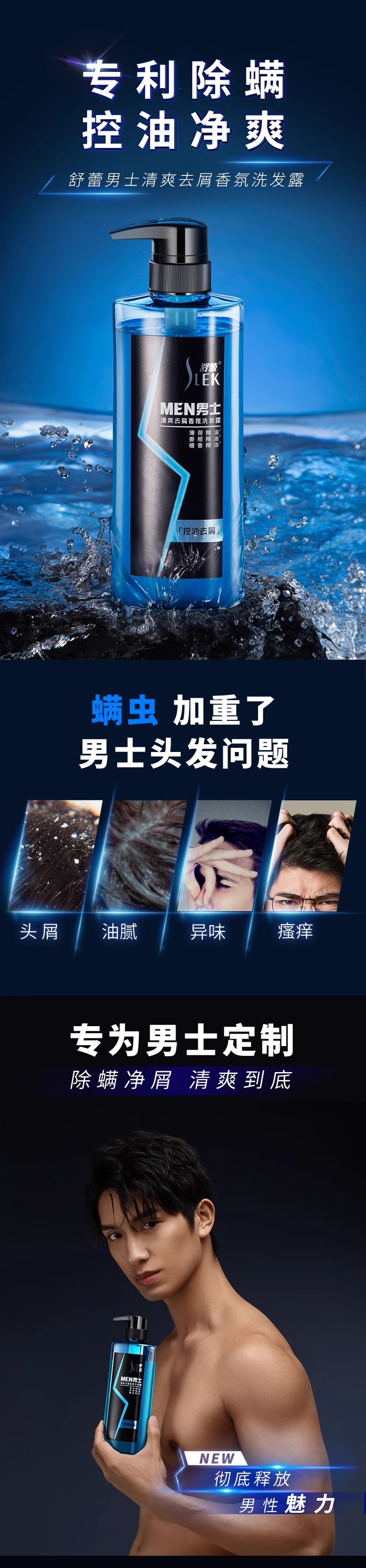 商品名称:Slek/舒蕾 男士清爽控油去屑香氛洗发露 500ml