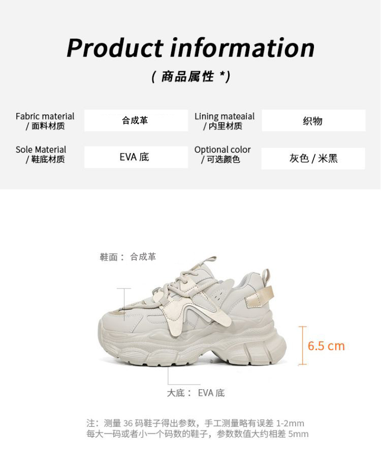商品名称:春夏厚底老爹鞋女百搭学生增高鞋轻便透气运动休闲鞋舒适女鞋 792279