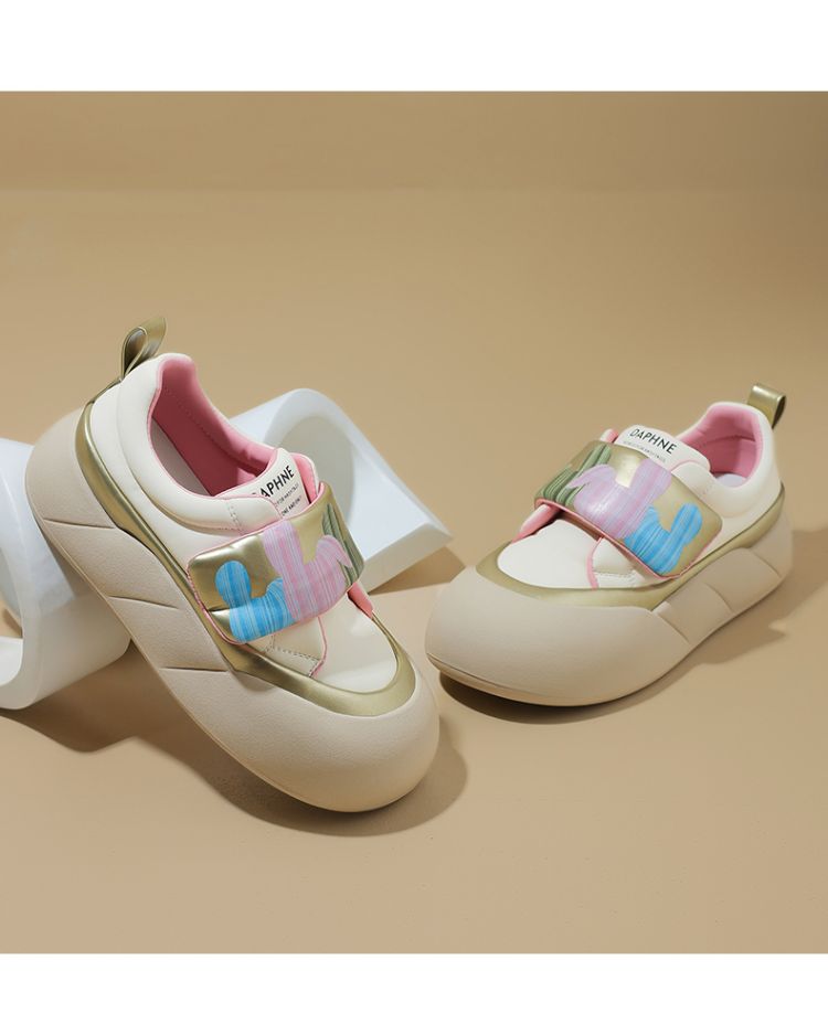 面包鞋女夏季百搭小白鞋可爱风通勤鞋轻便运动休闲鞋显高厚底鞋 053655
