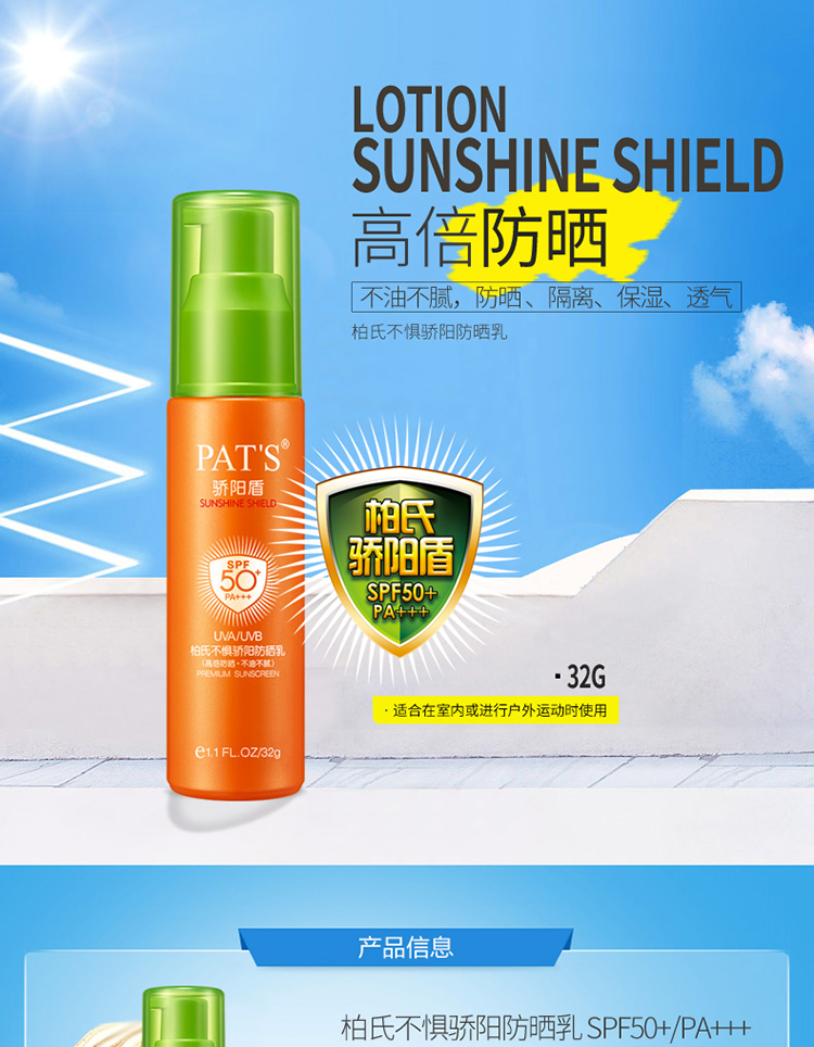 商品名称:柏氏不惧骄阳防晒乳SPF50+ PA+++(绿)