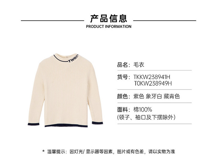 商品名称:【羊绒毛衣】小熊童装女童宝宝秋冬仿羊绒棉打底毛衣 761857