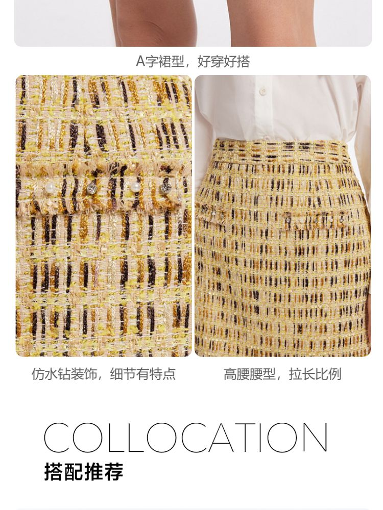 商品名称:【粗花呢面料】春夏半裙款优雅高腰A字短裙女气质百搭时尚 465809
